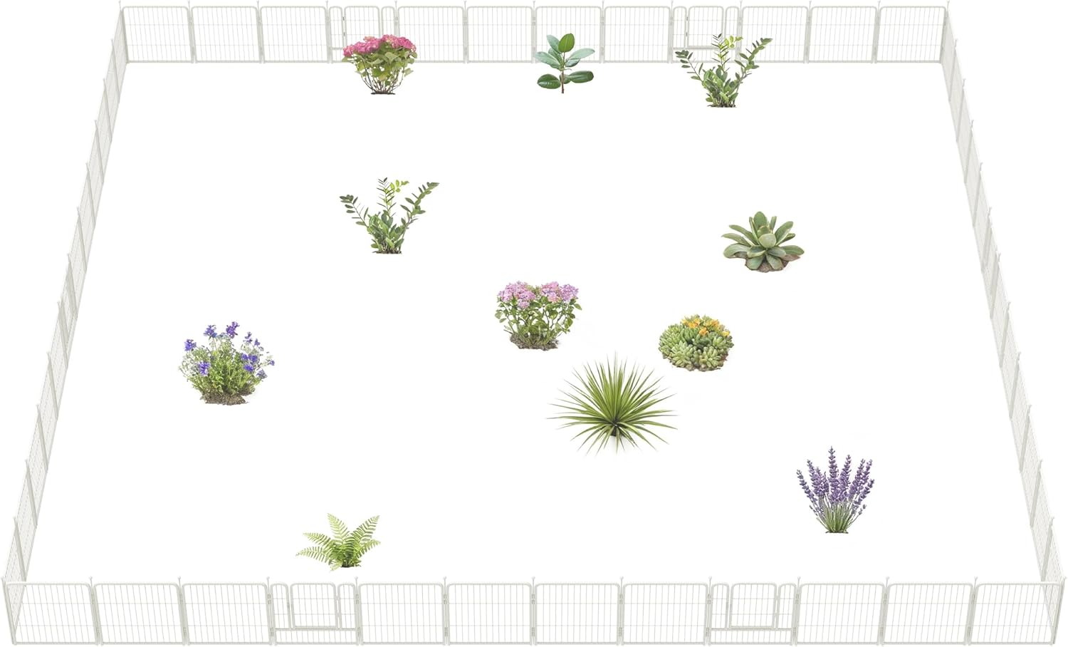 FXW Garden Fence Outdoor for The Yard – 32in(H) x 109.4ft(L) Heavy Duty Metal Animal Barrier for Dog and Rabbit, Decorative Dog Fence, 48 Panels, White