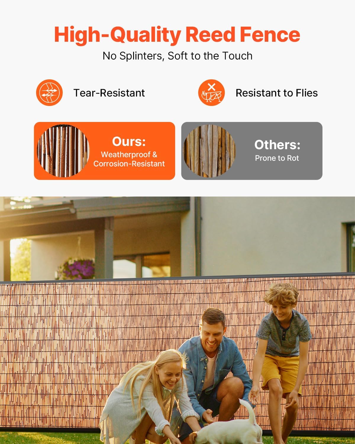 VEVOR Natural Reed Fencing,5.5ft x 16.4 ft, Decorative Bamboo Privacy Screen,Reed Fence Roll Patio Decorative Fences Reed Screen Curtain for Garden Backyard Patio Balconies,Brown