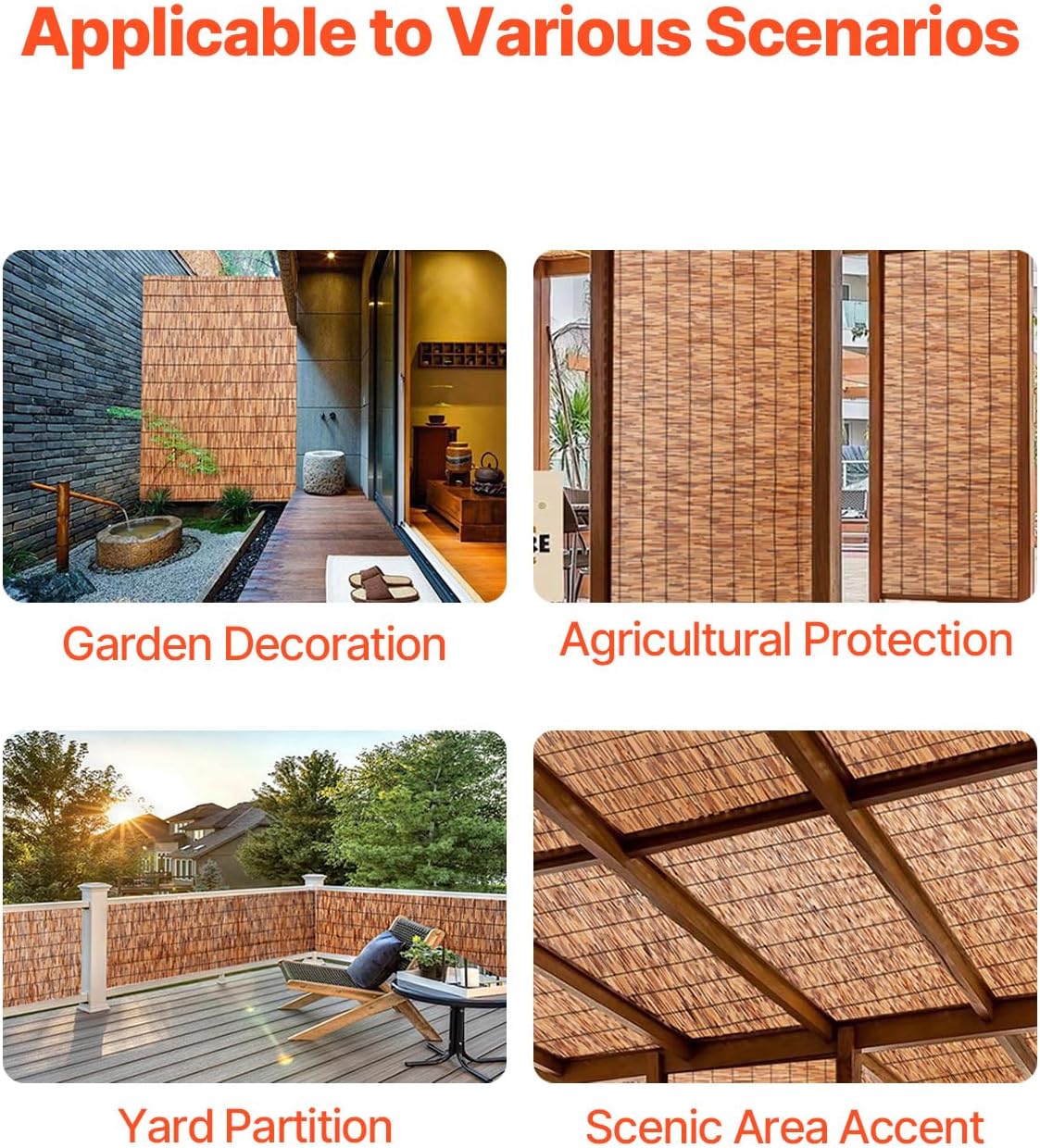 - Wide Application: This reed fence roll is ideal for use in gardens, courtyards, scenic areas, and agricultural protection. It not only divides spaces effectively but also adds a natural, rustic charm to any environment. Adaptable to various needs, it easily blends into different settings.