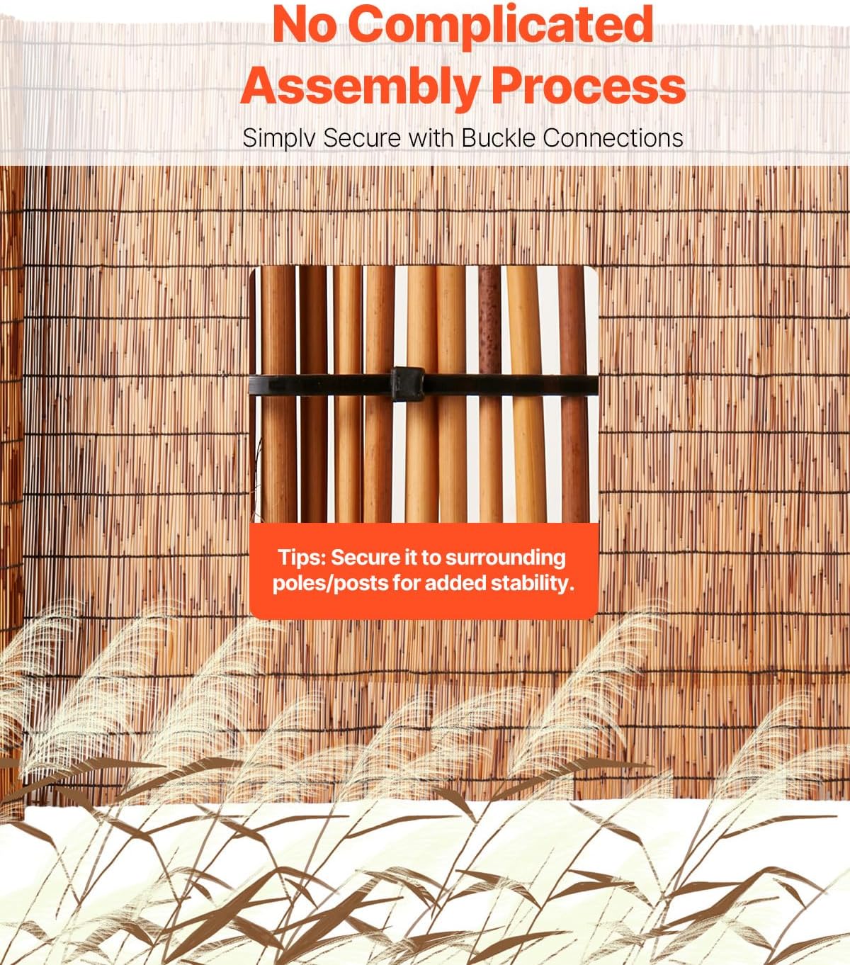 - Easy Installation: The set includes 1 natural reed fence and 100 zip ties, making installation simple and hassle-free. No need for special tools or complex skills—just apply 502 glue to the cut edges, let it dry, and trim as needed.