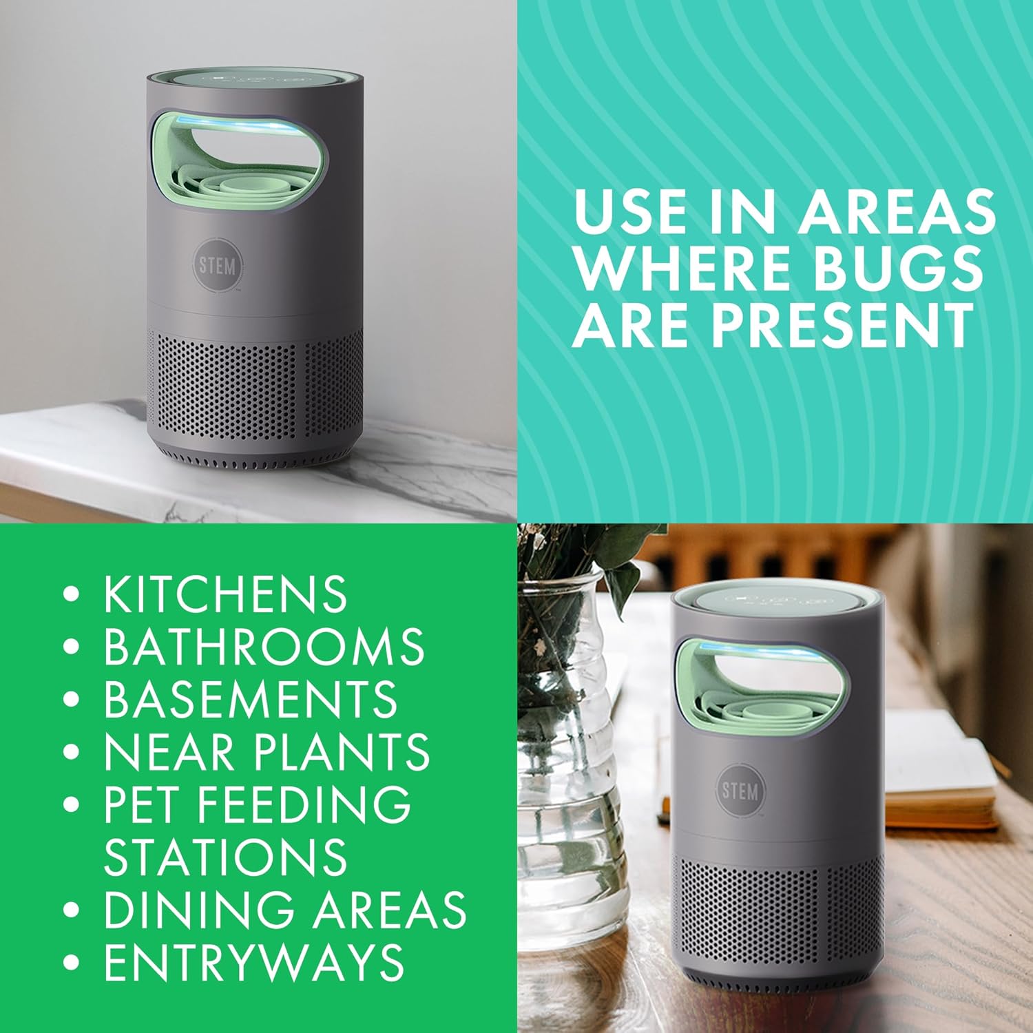 - Powerful Fly & Mosquito Trap: Perfect for areas of your home where insects are present, this bug catcher quietly controls pests so you can enjoy a peaceful space
