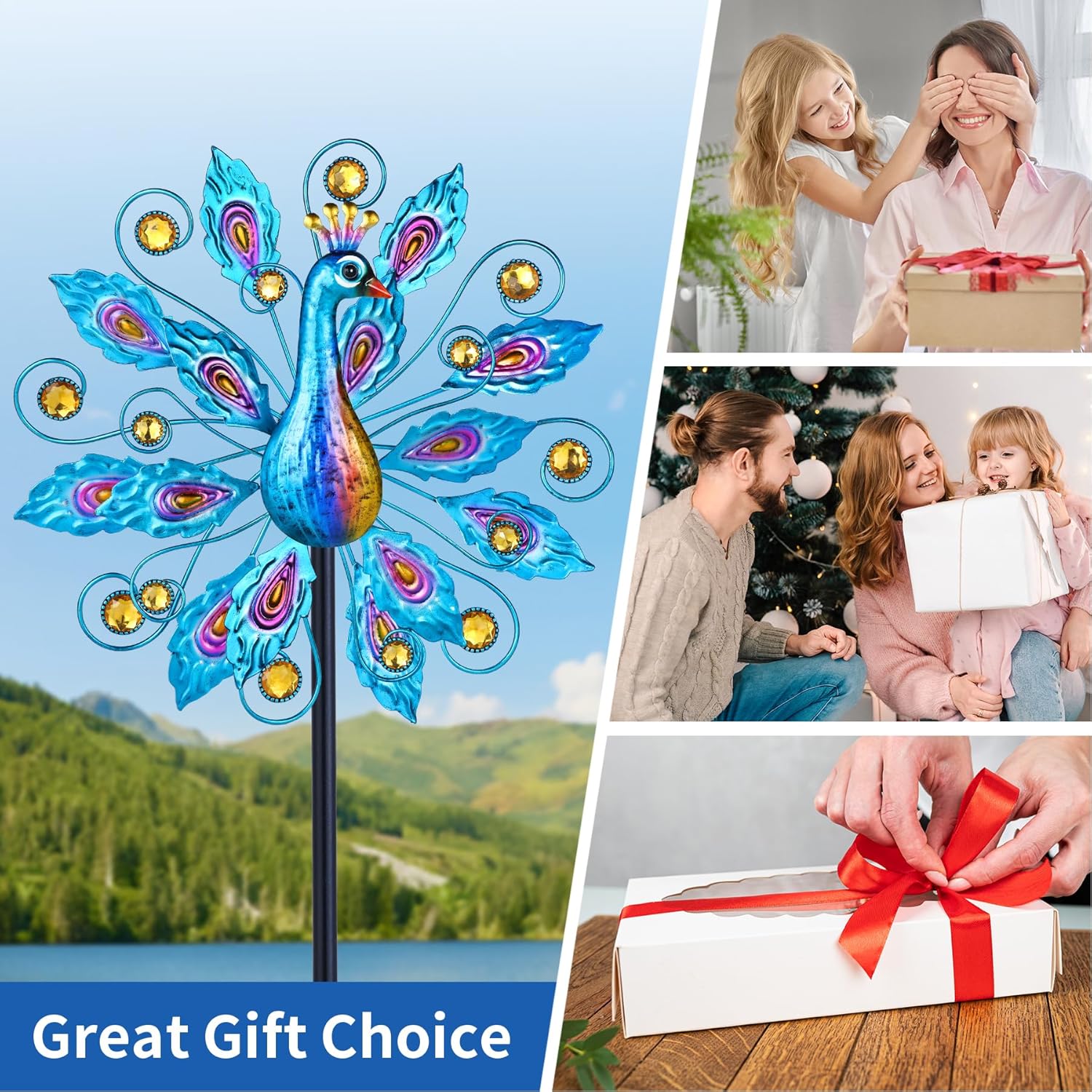- Wind mill for yard and garden is designed with vibrant peacock blades and adorned with stylish gems that catch the sunlight,which adds a fun and vivid touch to your garden, patio, lawn, or yard.