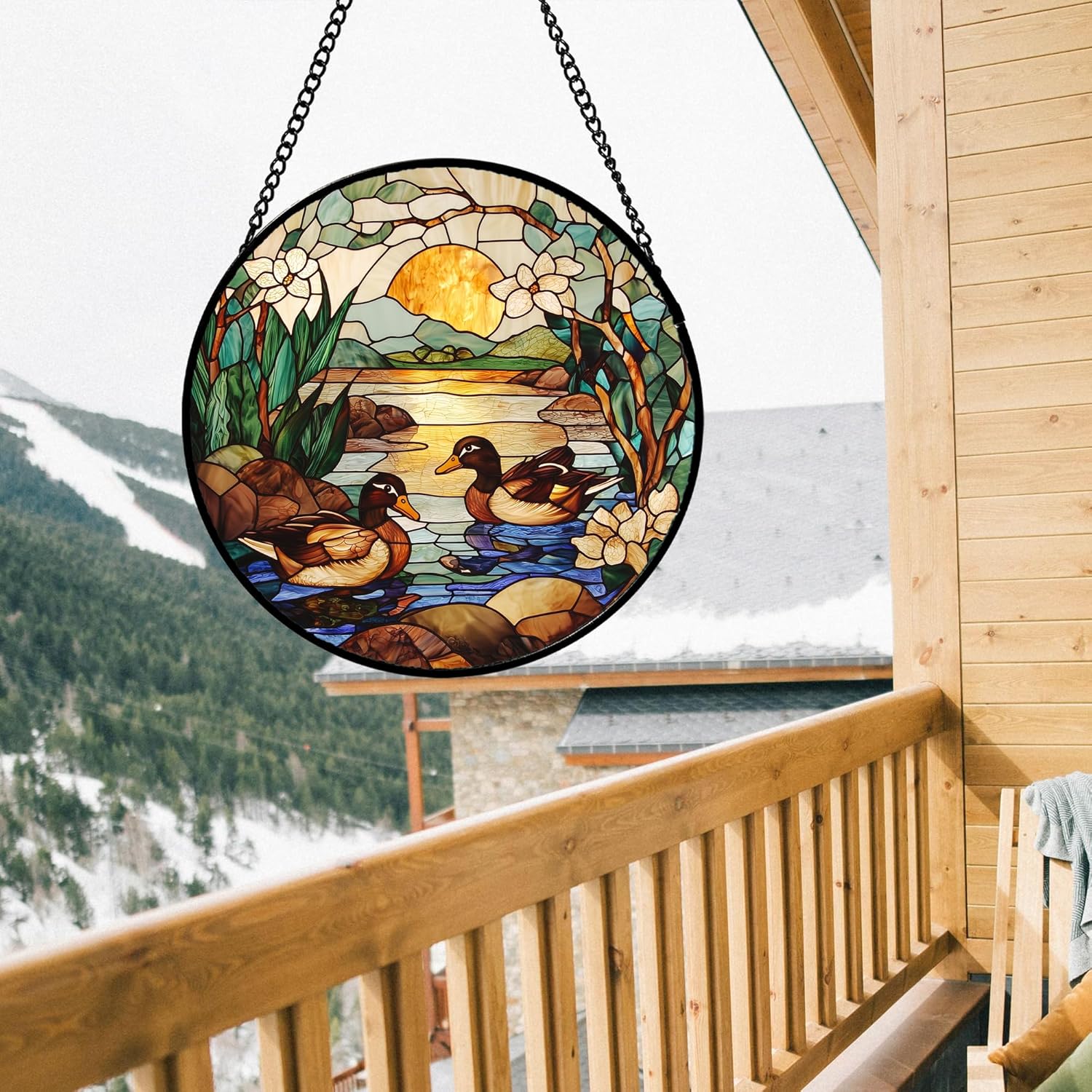 Stained Glass Window Hanging, Ducks in The Pond Sun Catcher for Door Home Decor Landscape Plant Suncatcher Christmas Mother's Day Birthday Gifts for Women Men Mom Nana 15 in