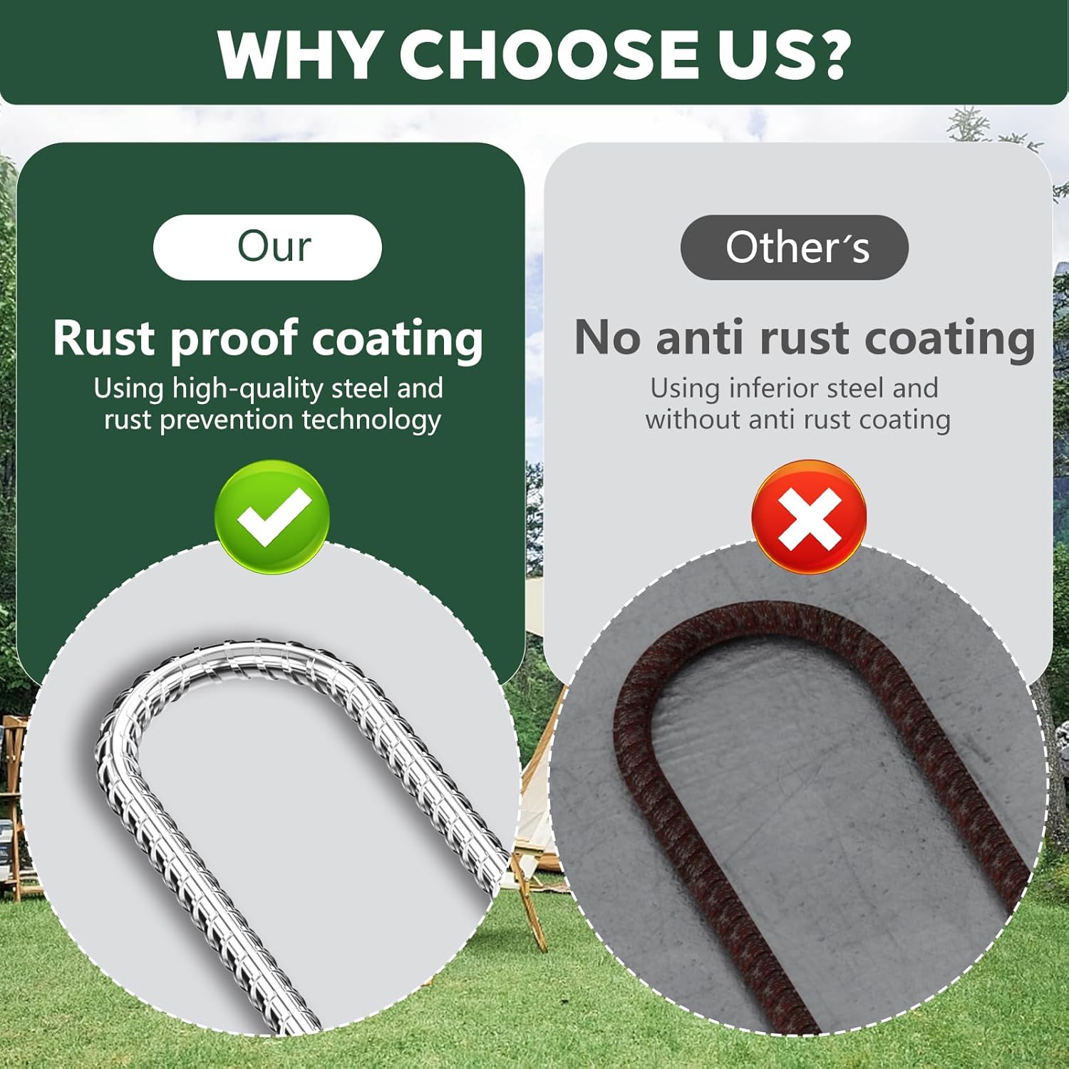 - Sharp Tips: Effortless insertion is guaranteed with our tent anchors. The sharp tips allow you to easily drive the stakes into the ground, ensuring your outdoor decorations and tents stay securely in place without any hassle