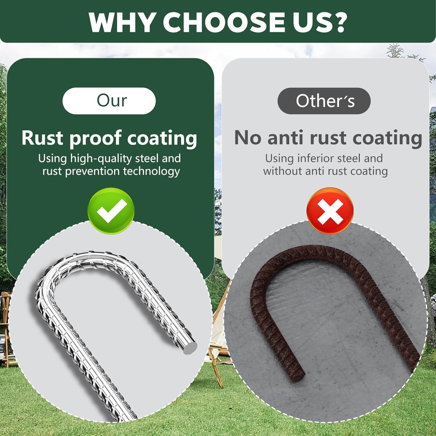- Stability: No more struggling with flimsy stakes! Our rebar stakes 12 inch feature a unique spiral design, providing maximum grip and stability in various terrains. Whether it's sandy beaches or rocky grounds, these stakes are up for any adventure
