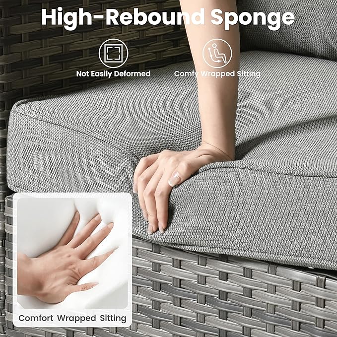 - Thickened Cushions: High-density foam cushions provide superior comfort, while the removable cushion covers are waterproof, weather resistant, wear resistant, easy to clean, perfect for easy maintenance in any outdoor setting