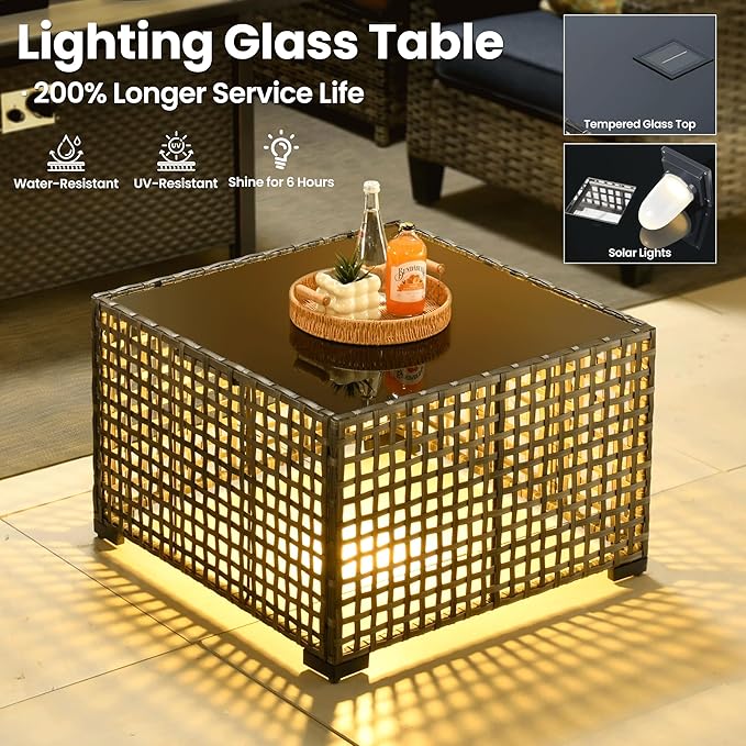 - Solar-Powered Light Table: The uniquely designed coffee table features built-in solar panels that automatically charge by day and emit warm, inviting light at night, it creates the perfect ambiance for evening gatherings while offering convenient space for drinks and snacks