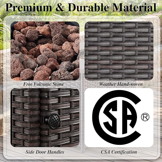 - 【Warm Bonfire and Auto-ignition Device】The gas fire pit table has a heat output of 50,000 BTUs and is equipped with an integrated electronic ignition that adjusts the flame to your desired temperature with the control button. Continuously provide you with enough warmth.