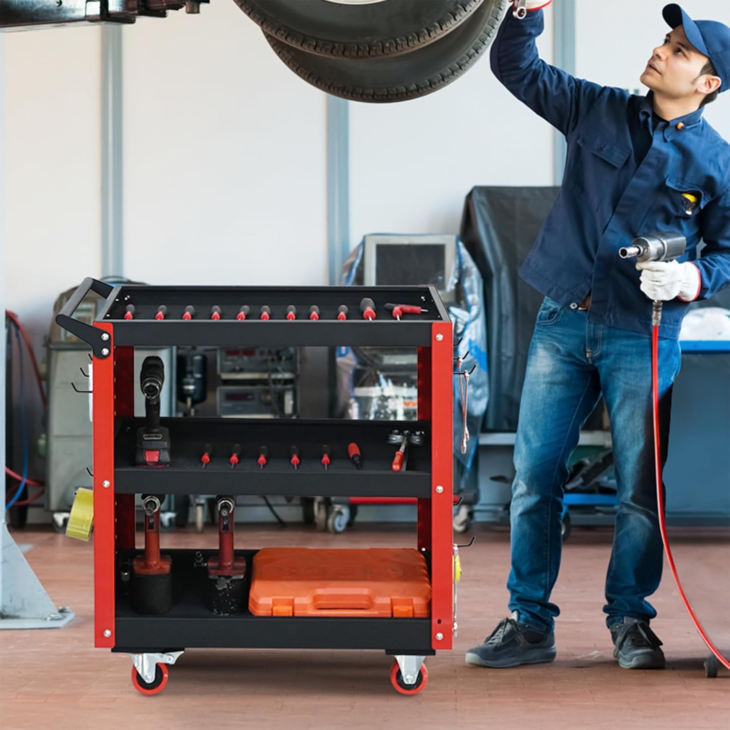 3 Tier Rolling Tool Cart on Wheels, 660LBS Load Capacity Heavy Duty Utility with Pegboard for Repair Shop, Garage, Warehouse, Workshop