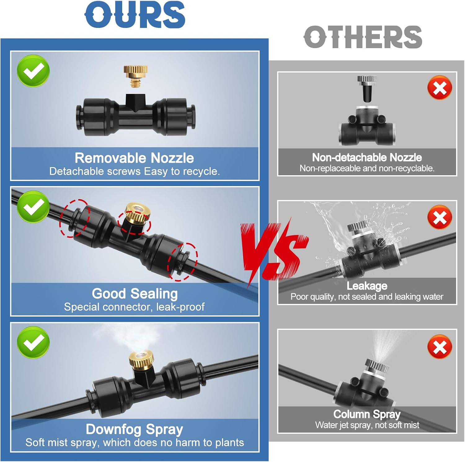 - 【Saving Energy & Water】Our water misters for cooling outdoor use advanced fine mist technology to deliver powerful, refreshing cooling with minimal water usage—saving significant water compared to traditional sprinklers. Enjoy a comfortable, cool patio, deck, or garden space sustainably all summer long without electricity or energy consumption or spiking utility bills.