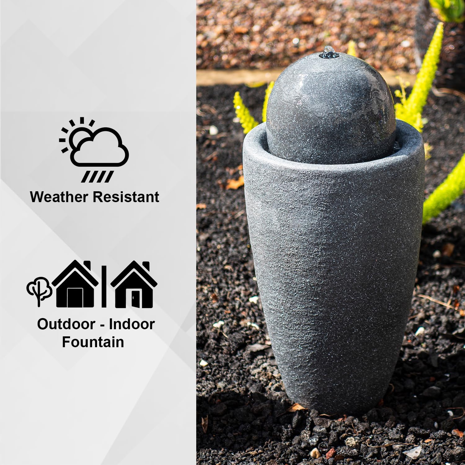 - GREAT SIZED AND LONG-LASTING: This ball water fountain decor measures 25.98"H x 11.81"L x 11.81"H, cord length 5 meters, made of durable Fiber Stone that ensures high quality for years. Also, water capacity of the fountain is 6.4 L.
