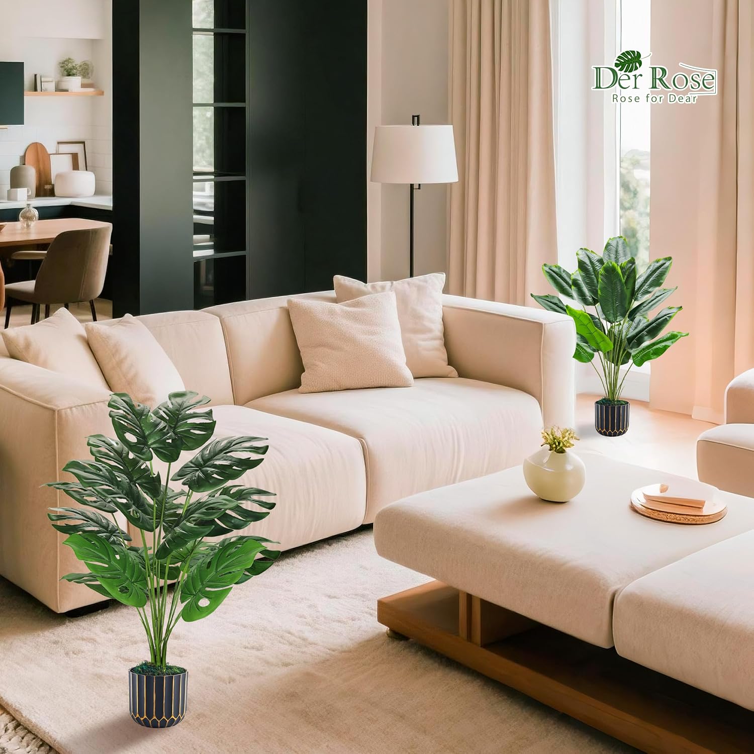 Der Rose 2 Pack 28" Tall Bird of Paradise Artificial Plants and Artificial Monstera Plants Tropical Fake Potted Banana Tree Faux Plants Indoor and Outdoor for Home Office Living Room Porch Decor