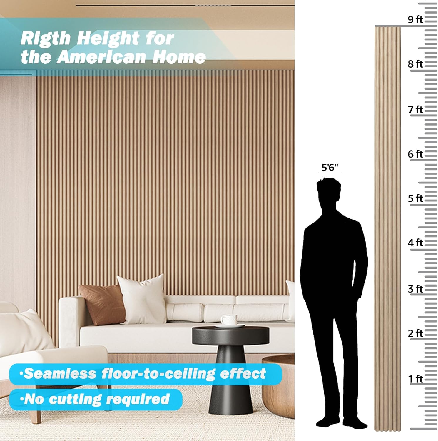 Art3d Fluted Wood Panel for Wall and Ceiling, Beaded Accent molding for Home Decoration, Pack of 4pcs + 1pc End-Trim, Size 108 x 5.7in.- Beaded Ashtree