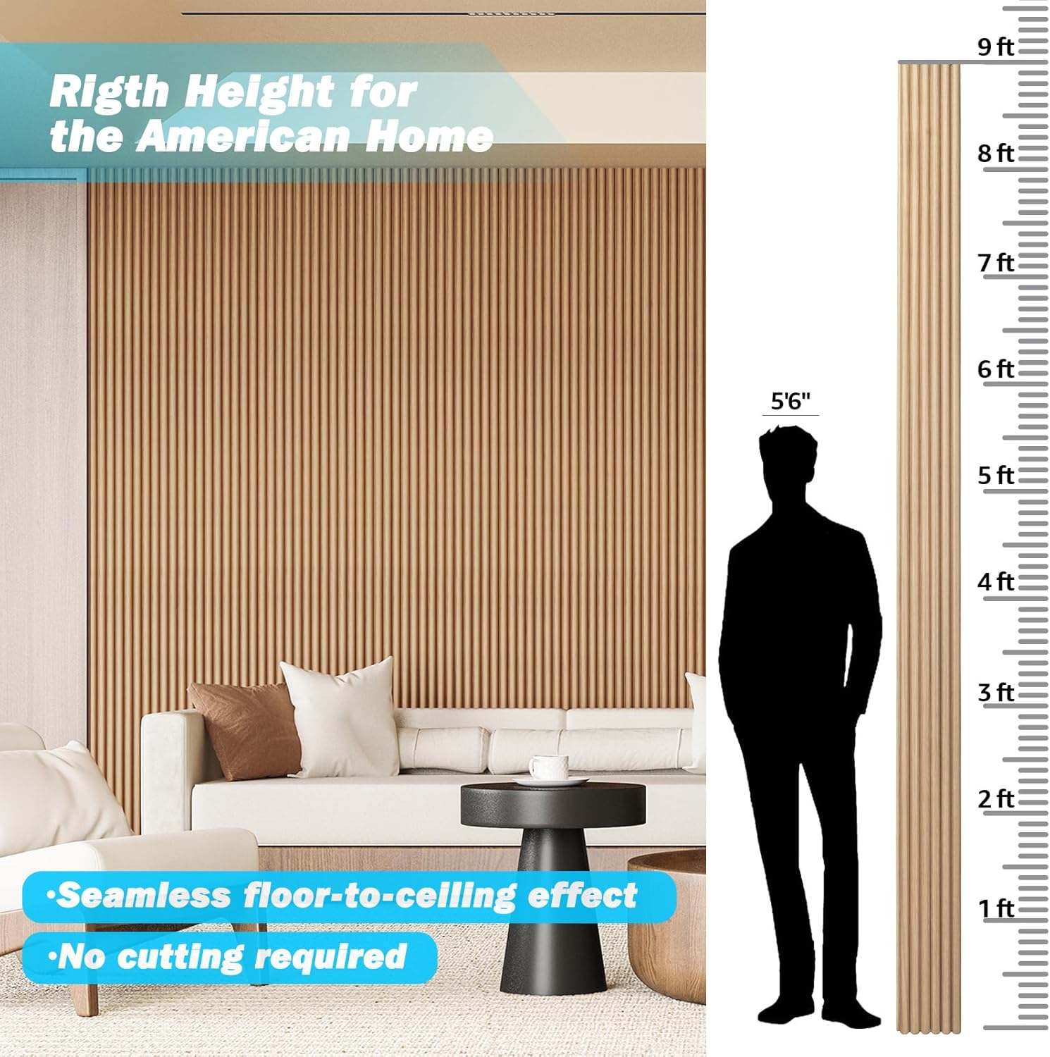 Art3d Fluted Wood Panel for Wall and Ceiling, Beaded Accent Molding for Home Decoration, Pack of 4pcs + 1pc End-Trim, Size 108 x 5.7in.- Beaded Oak