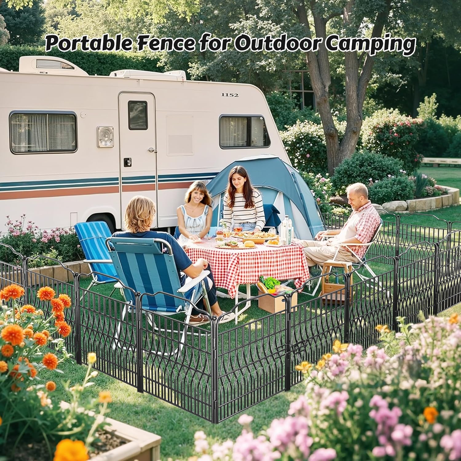 - 【Multi-purpose Decorative Fence】 The classic black garden fence, featuring an arc-shaped design, combines fashion with practicality and can be adapted to various garden or courtyard styles. The fence can be assembled into any shape according to your needs to separate part of garden and serve as physical barrier between patio and pool. The temporary fence also can be used for outdoor camping with dogs
