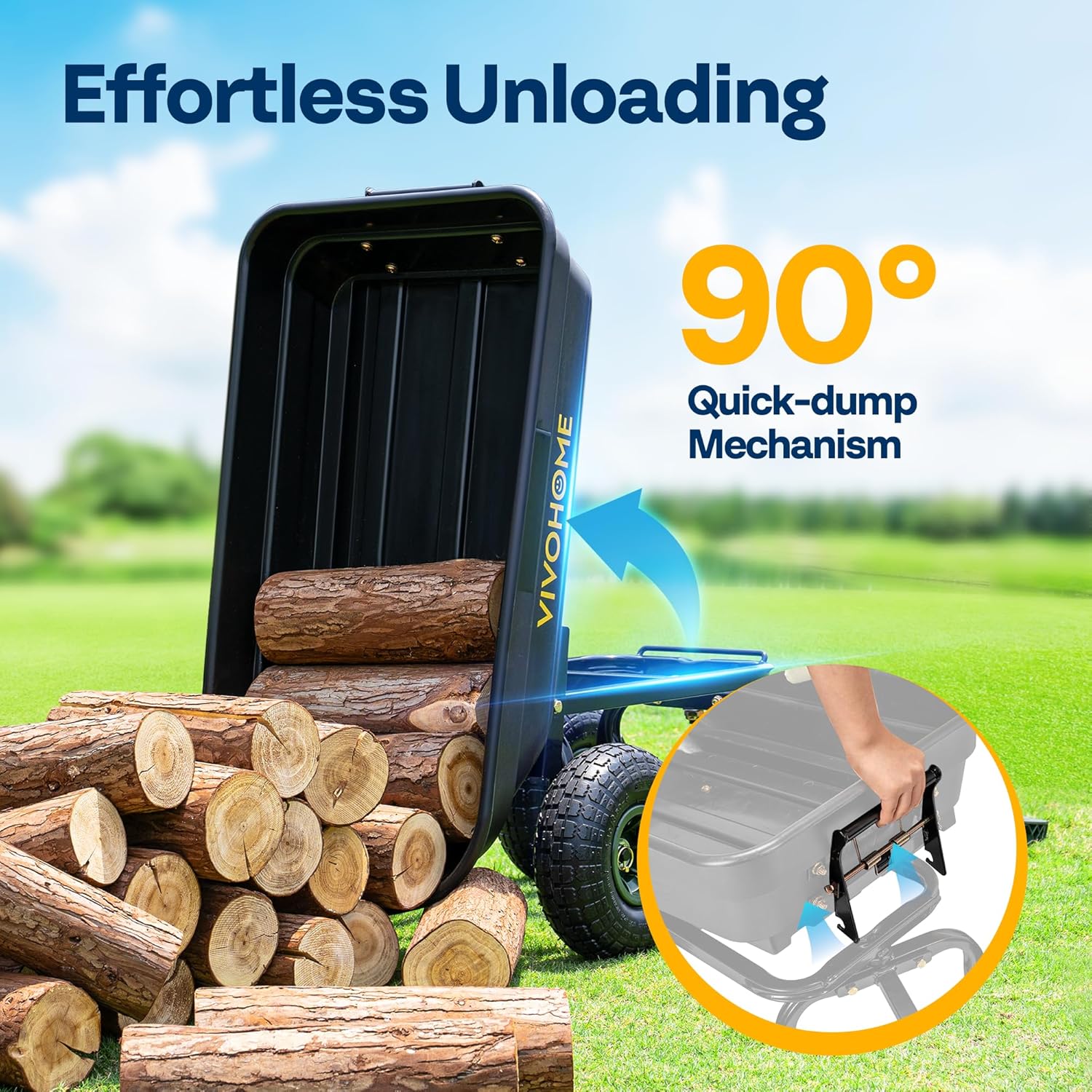 - Quick and Easy Installation: The wagon features a 90° quick-dump mechanism for smooth and effortless unloading of heavy materials like dirt, leaves, or wood chips; It also offers a simplified steel frame that assembles quickly without tools, saving you time and effort