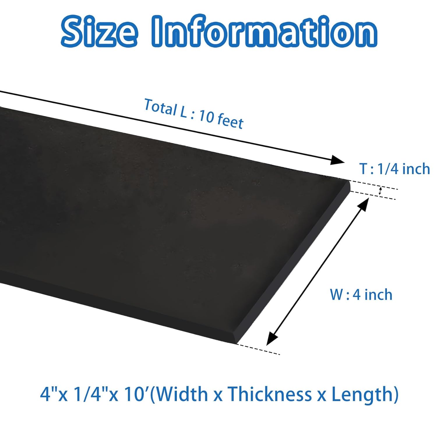 - Size information: The rubber strip is 10 feet in length, 4 inches in width, and 1/4 (.25) inches in thickness.