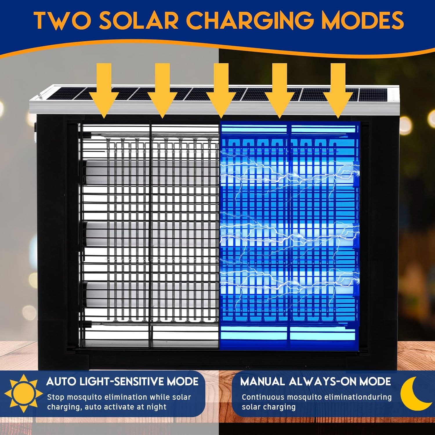 - Alternative Usb Charging: in addition to solar power, the mosquito zapper can also be powered through USB charging; It takes about 5 hours to reach a full charge, a more efficient way to keep the device always ready to zap annoying bugs