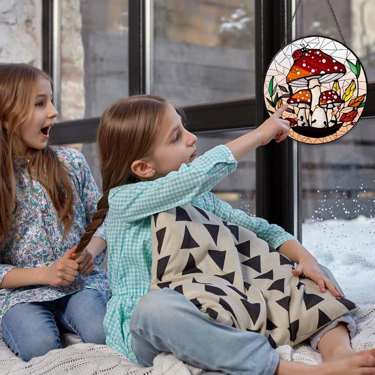 Mushroom Forest Sun Catcher Stained Glass Window Hanging Mushroom Lover Gifts for Women Wall Decor Handmade Sun Catcher Decoration for Home Graden Housewarming Gifts