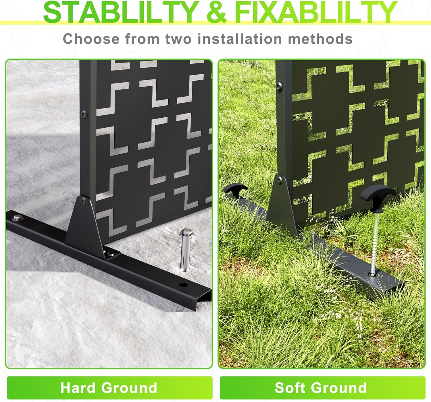 - 【Robust Metal Build】The metal privacy screen boasts a robust construction crafted from high-quality galvanized steel. Designed to endure the rigors of outdoor elements, its sturdy build guarantees prolonged durability.
