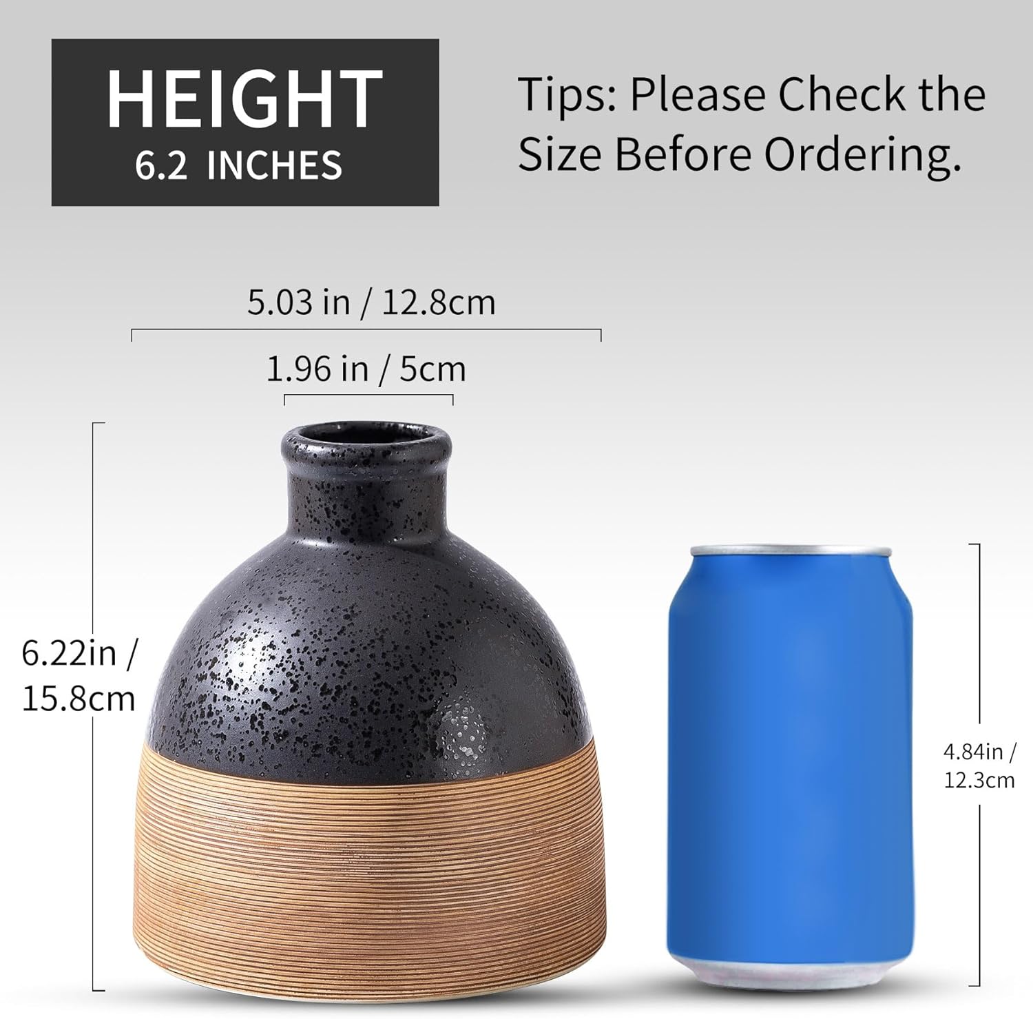 - 【Hemispheric Two-Tone Striped Design & Rustic Charm】SURE YUESI round ceramic vase features a unique half-black, half-brown horizontal striped hemispheric silhouette (6.5x5.7x5.4 Inch), blending modern geometry with rustic farmhouse aesthetics. Perfect as mantle decorations, cottage core table centerpieces, or black living room decor accents.