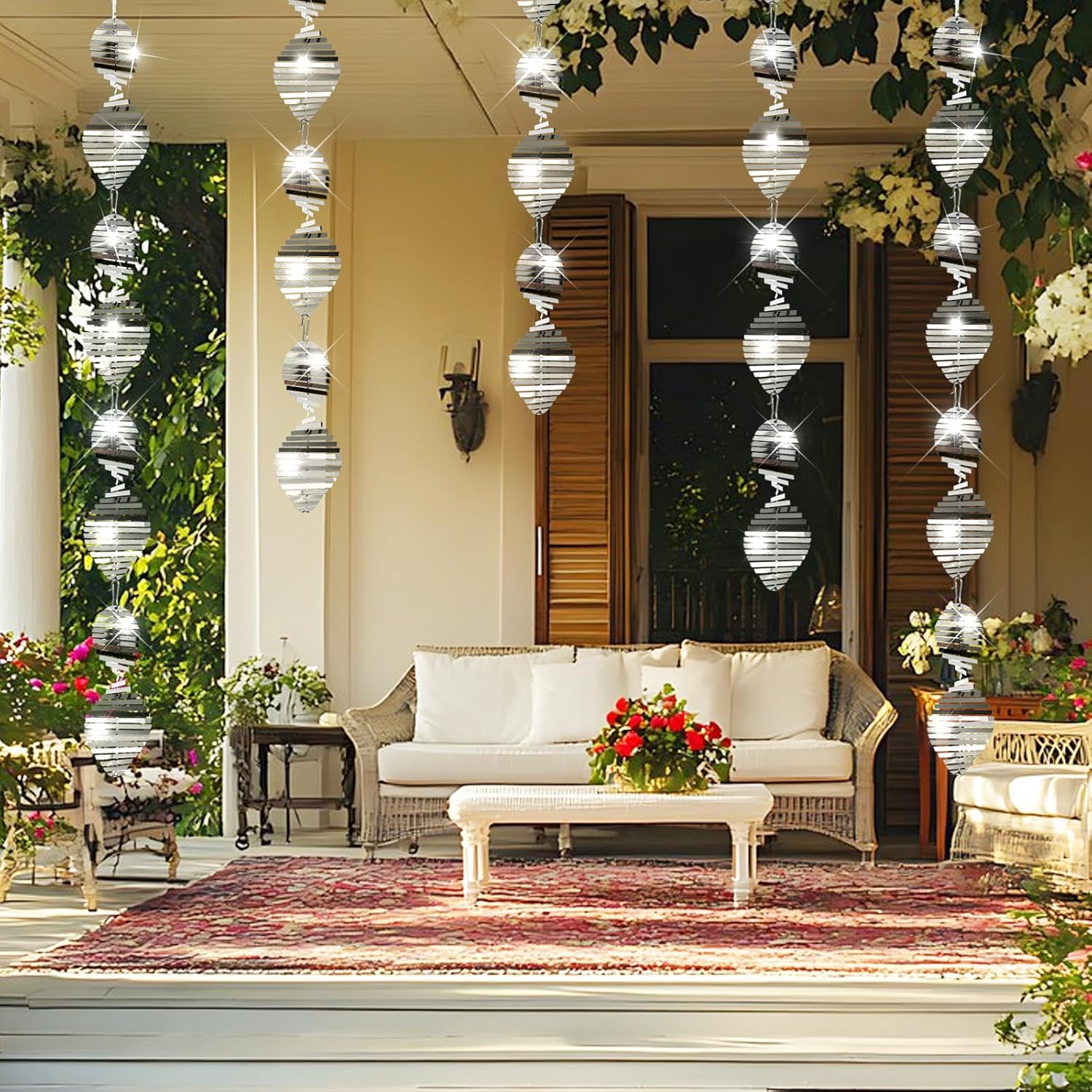 - Highly Reflective Spiral Bird Reflectors:Sixteen double‑sided stainless‑steel spirals capture sunlight from every angle and rotate softly in the breeze, creating brilliant flashes that naturally reduce casual bird landings. For strongest visual impact, hang where direct sun and a light wind meet.