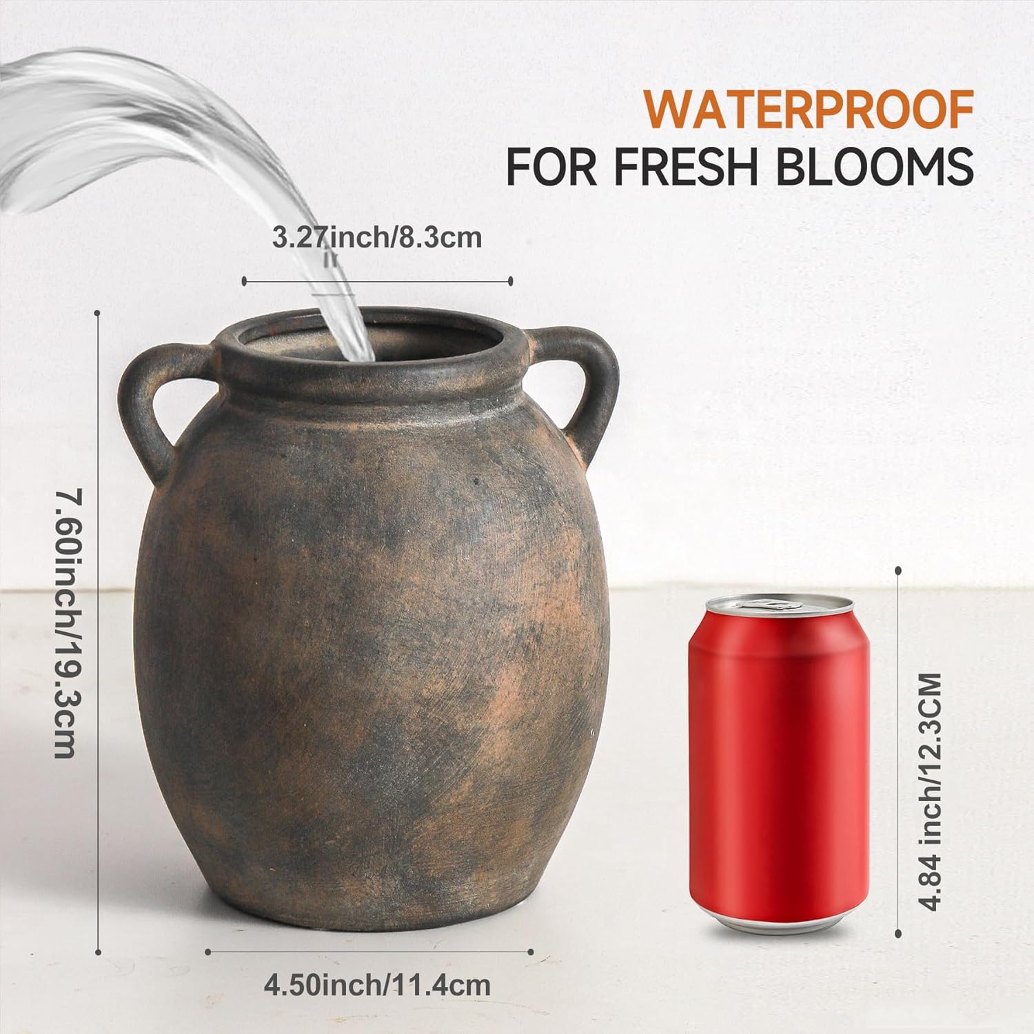 Ceramic Flower Vase 7.6 inch Farmhouse Rustic Vase Decorative Pottery Terracotta Vases for Home Decor Table Mantle Fireplace Living Room Bathroom Wedding Centerpiece (Black)