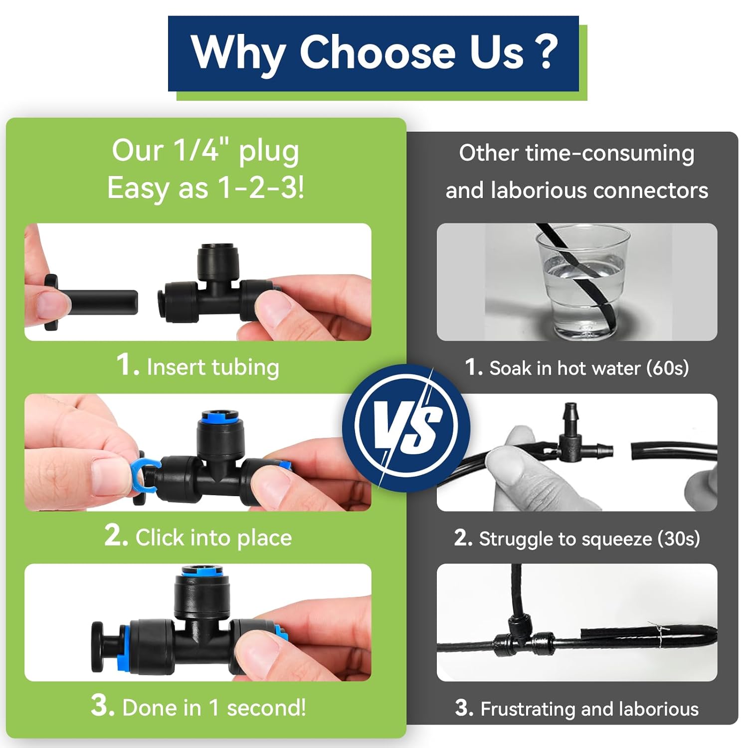 10 Pack 1/4" End Plugs for Drip Irrigation Tee Connectors, Quick Connect Universal Drip Irrigation Tubing Coupling Valve, Connector Locking Fitting for Sprinkler or Drip Irrigation System
