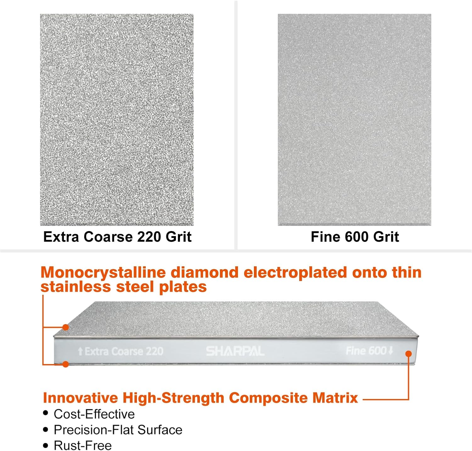 SHARPAL 169H Large 8" x 3" Dual-Grit Diamond Sharpening Stone โ Extra-Coarse 220 & Fine 600 Grit Monocrystalline Diamond Whetstone, Professional Knife Sharpener with Anti-Slip Pad and Angle Guide