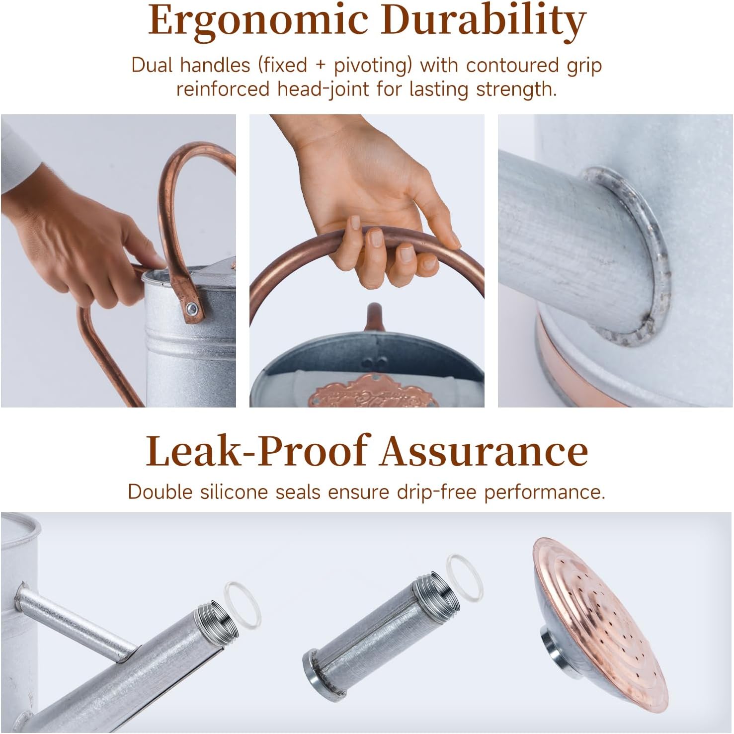 1 Gallon Galvalume Metal Watering Can with Solid Brass Sprout, Handle & Base Trim - Genuine Forged Copper Joints for Indoor/Outdoor Plants, Garden, Balcony for Kids and Adults (Stardust & Vermilion)