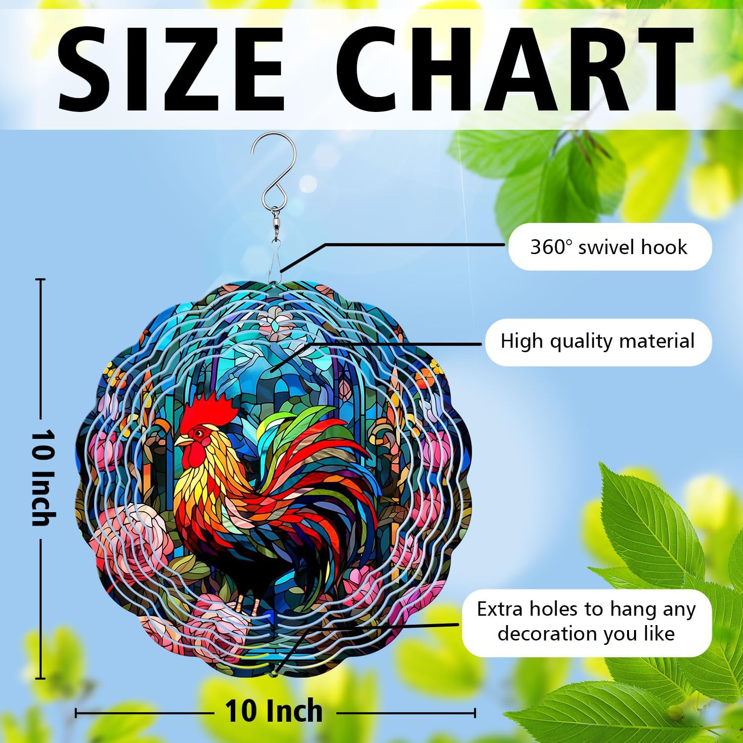 Rooster Yard and Garden Wind Spinner, Unique 3D Hanging Rooster Wind Spinner