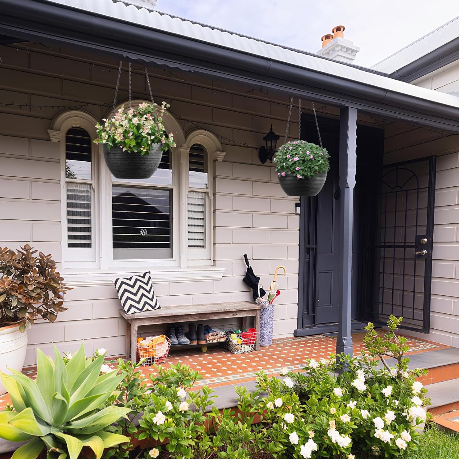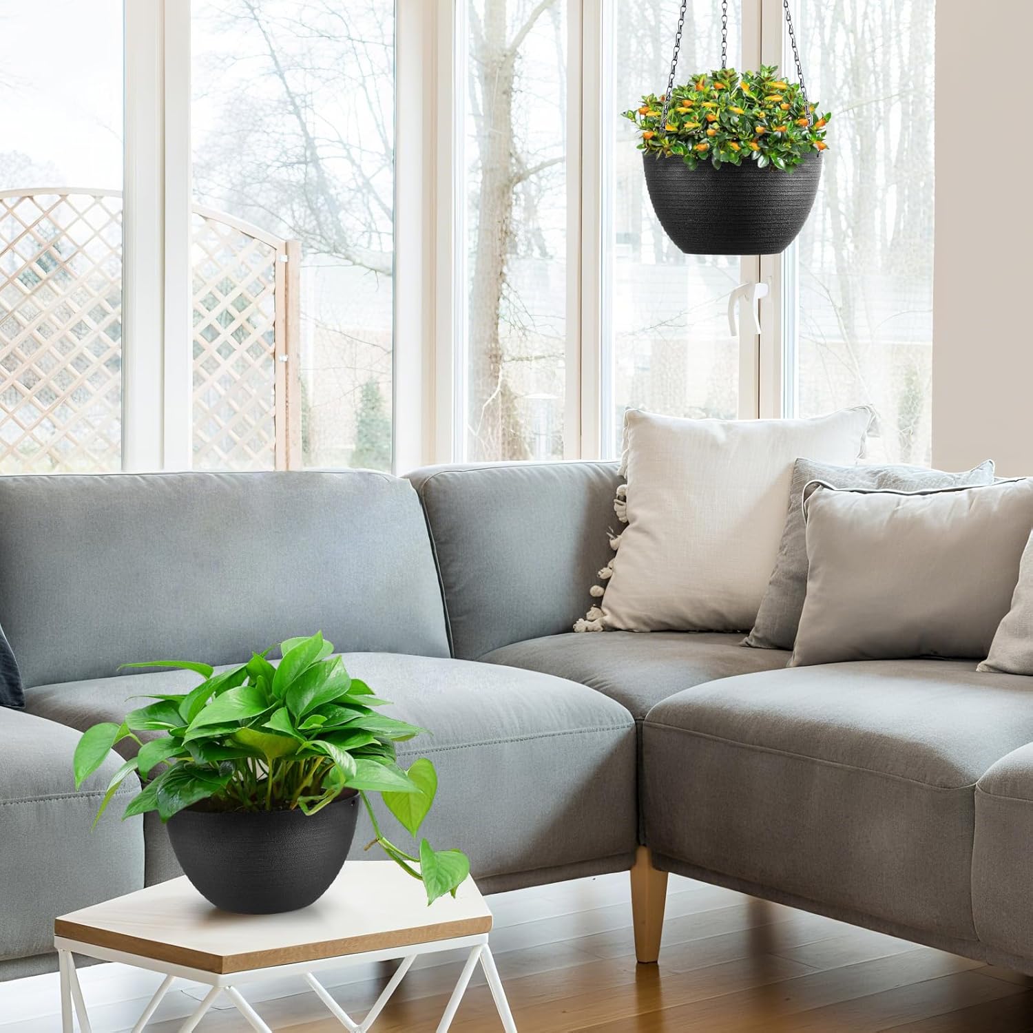 Hanging Planters for Indoor Outdoor Plants, Set of 2 Self Watering Hanging Pots with Drainage Hole & Plug and 20" Chain & Hooks