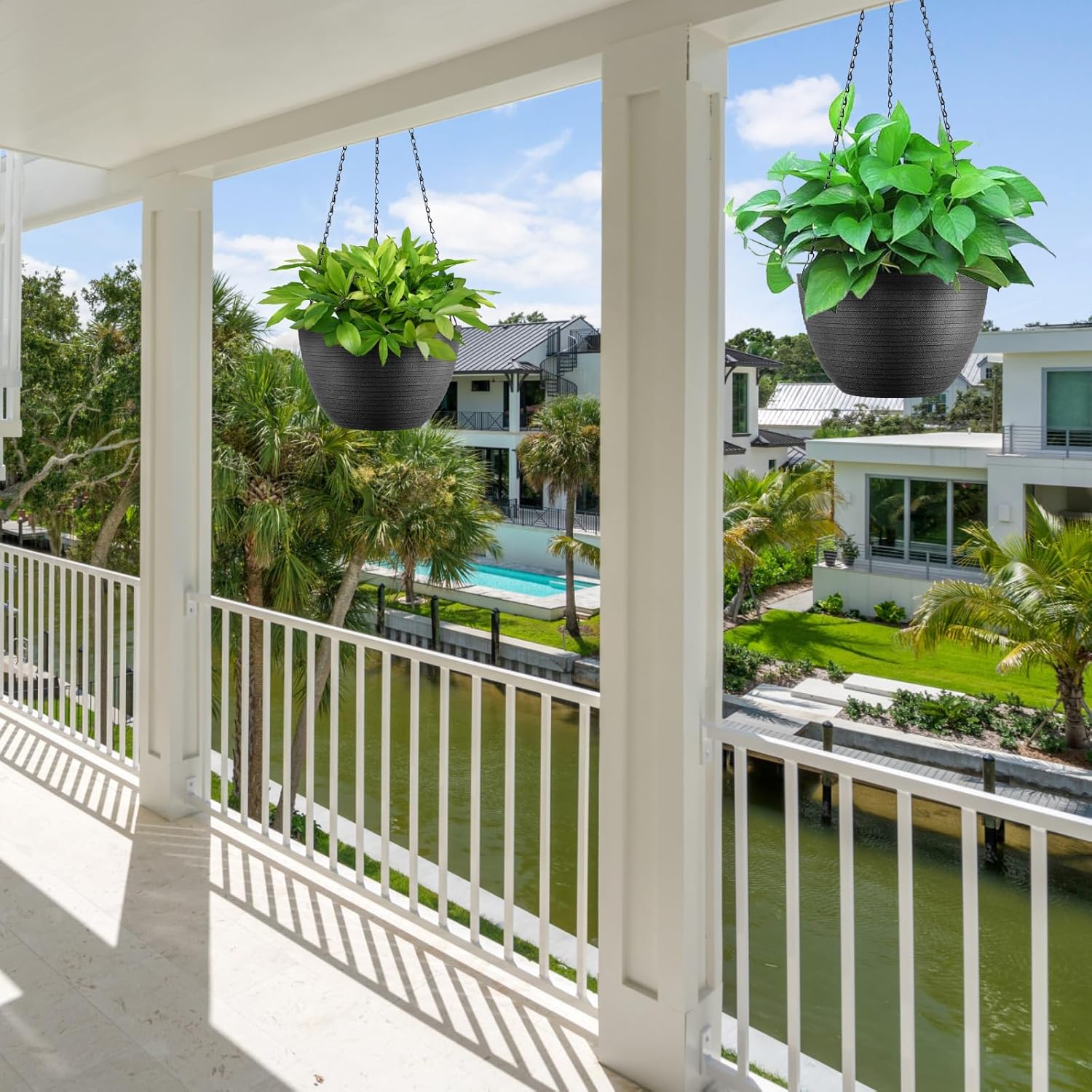 Hanging Planters for Indoor Outdoor Plants, Set of 2 Self Watering Hanging Pots with Drainage Hole & Plug and 20" Chain & Hooks