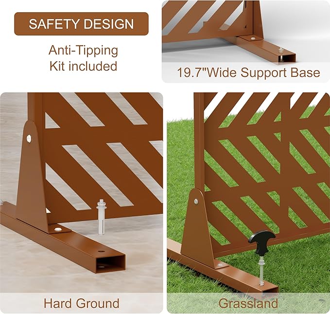 - 【Modern Outdoor Privacy Screen】: This Stylish 72" H x 44" W metal privacy screen is favorable privacy and good for sunlight filter, as well as enhance the aesthetic of your outdoor space. This brown decorative fence panels with stand adds the visual appeal of your balcony, patio, lawn, deck, garden and any outdoor setting.