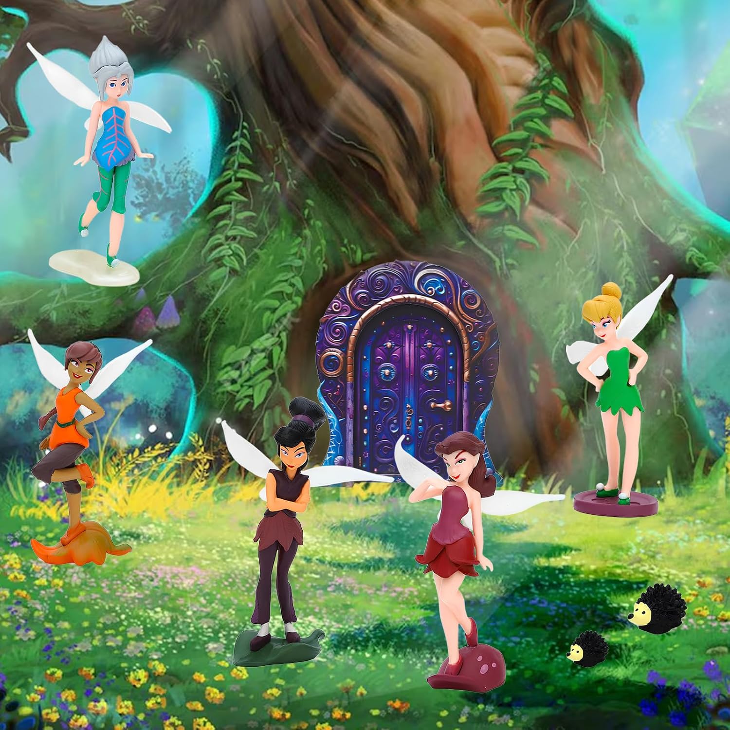 - What you get: a fairy door, 7 pieces of fairy figurines, 2 hedgehog, 1 mushroom, a good combination for garden decorations