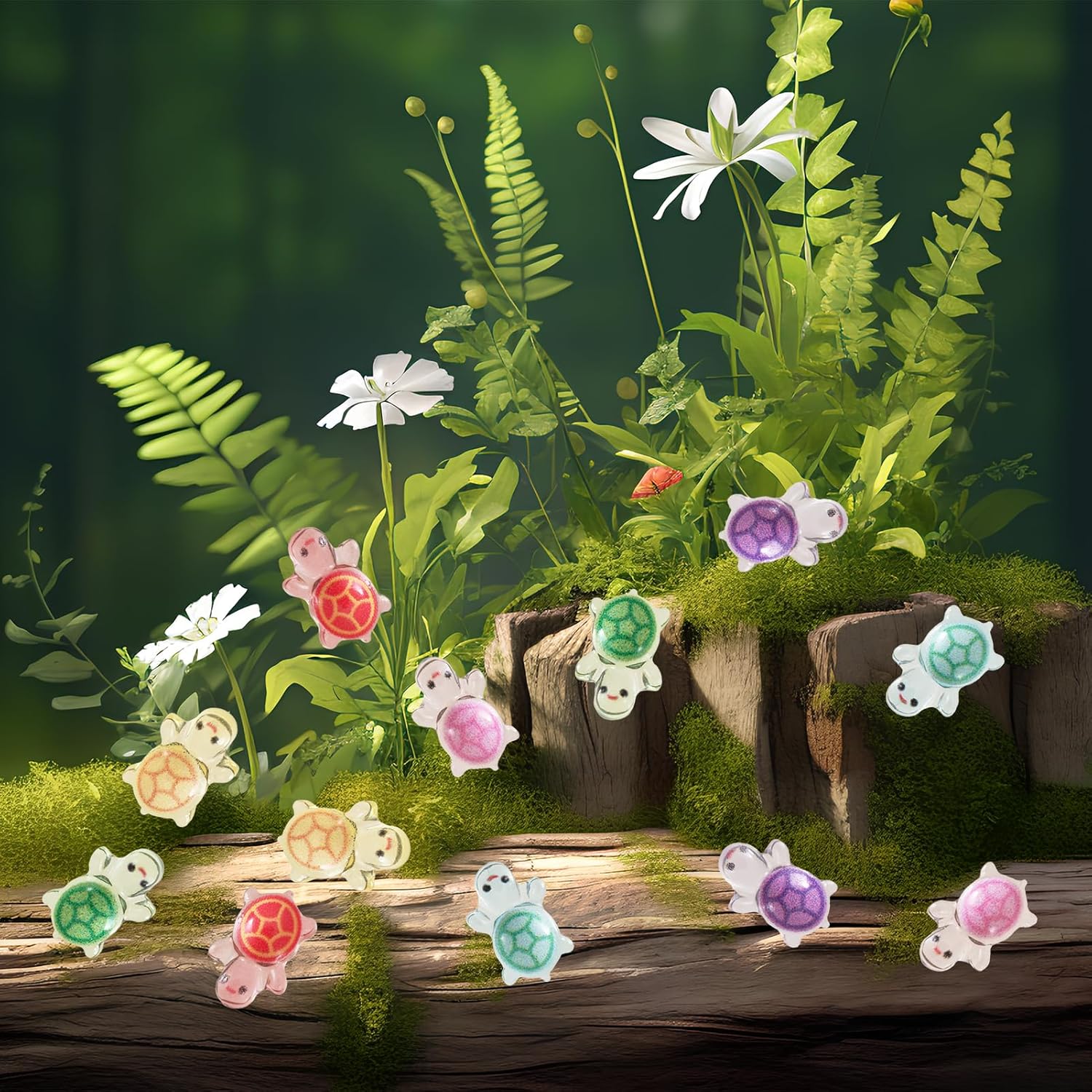 400 Pcs Luminous Mini Resin Turtle Mini Resin Figurines Cute Miniature Figurines for Fairy Garden Decor Micro Landscaping Hide Crafts Nail Art