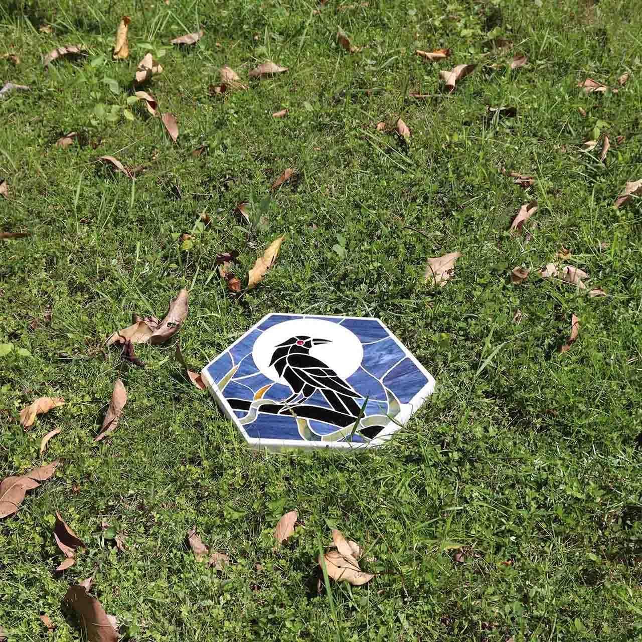 Bieye MSS004 Tiffany Style Stained Glass Mosaic Decorative Stepping Stone for Garden Decor (Raven, 13" Hexagonal)