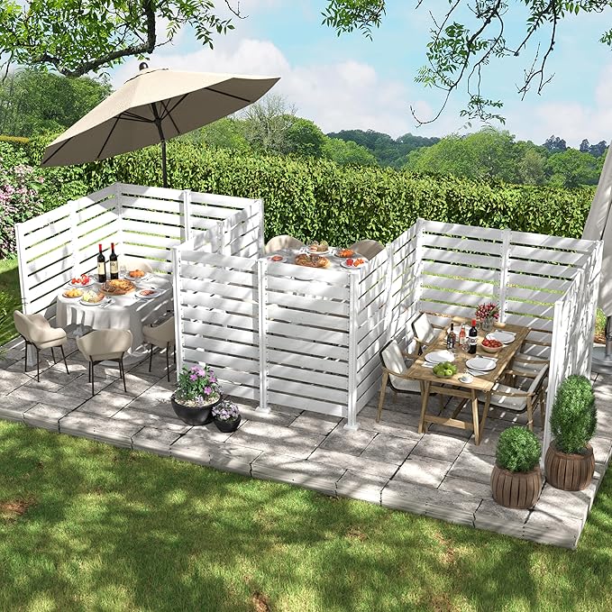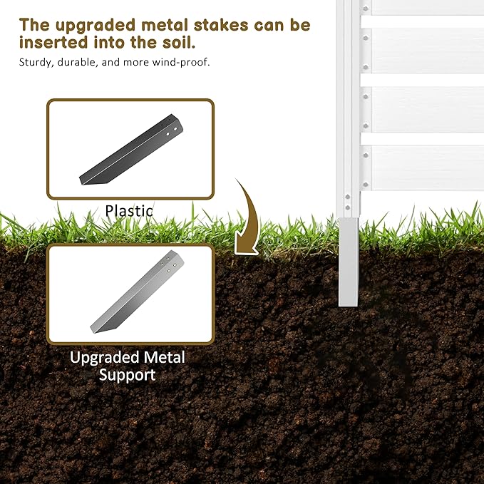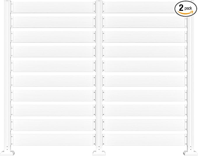 MUPATER 60"×78" No-Dig Privacy Screen, Sturdy Outdoor Screen for Hard Ground & Soil, Flexible Installation, Sturdy Aluminum Column, Decorative Fence Panel, Air Conditioner Shield, White (2 Panels)
