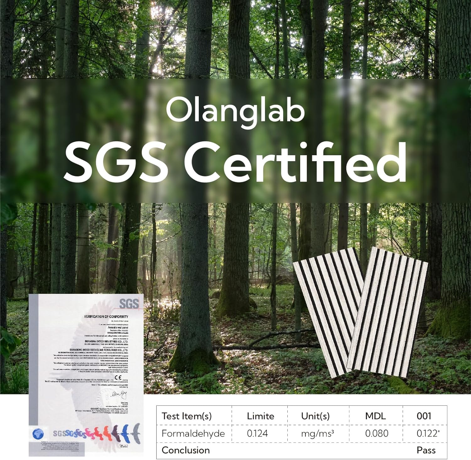 - Recyclable Material: Olanglab wood 3D wall panels consist of MDF slats and acoustic felt backing, they are made of recyclable and reusable materials that contribute to promoting sustainability.