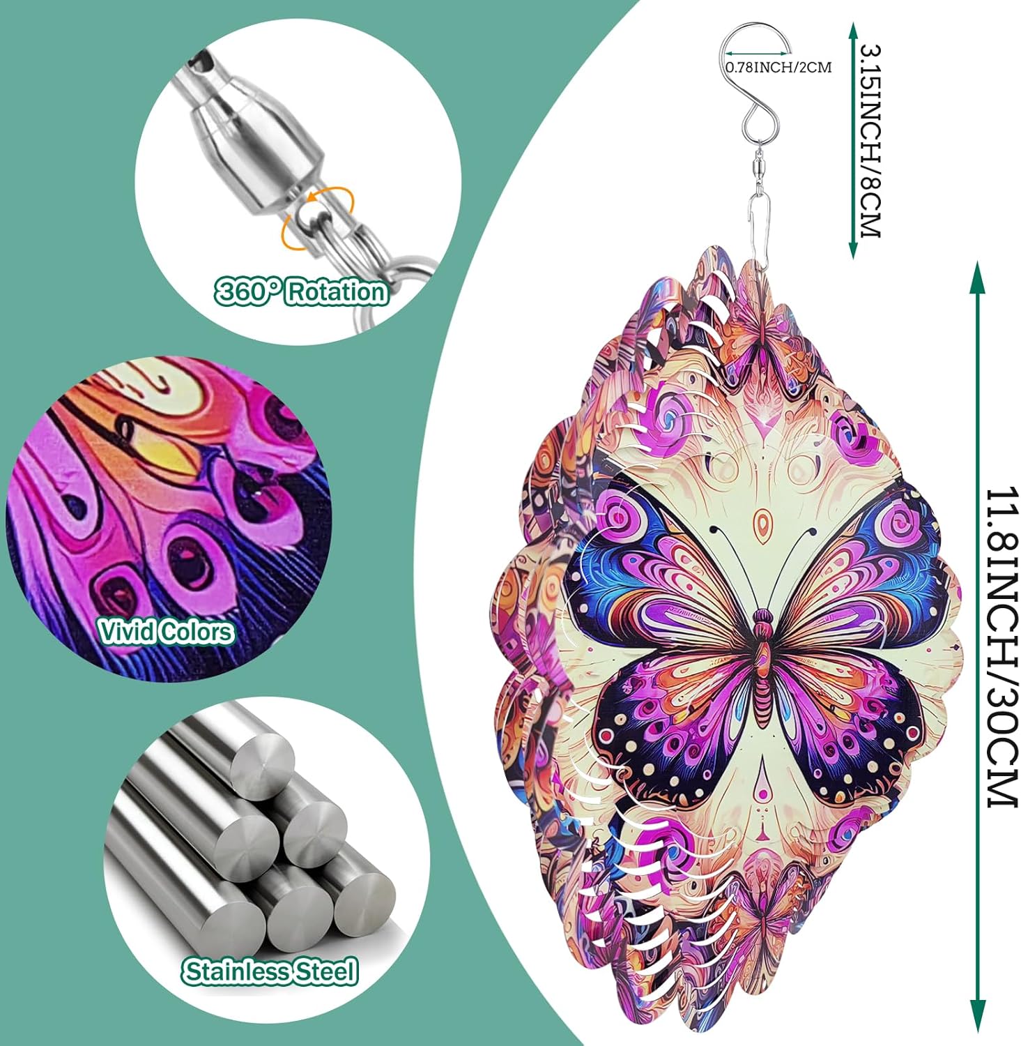 - 3D Kinetic Visual Effect – Designed with layered cut metal and bright reflective colors, the butterfly wind spinner creates a mesmerizing 3D effect as it spins in the breeze, catching sunlight and adding motion to outdoor spaces.