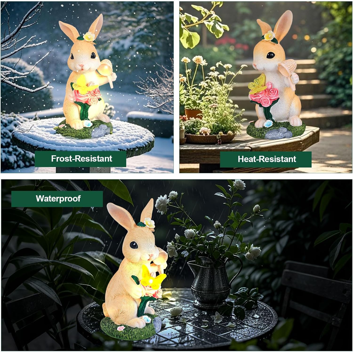 - Durable and Weatherproof Materials: Crafted from high-quality resin, our bunny garden statue is vibrant and intricately detailed. Equipped with UV-resistant coatings and an IP44 waterproof rating, it withstands rain, snow, and sun, ensuring long-lasting beauty for your outdoor decor.