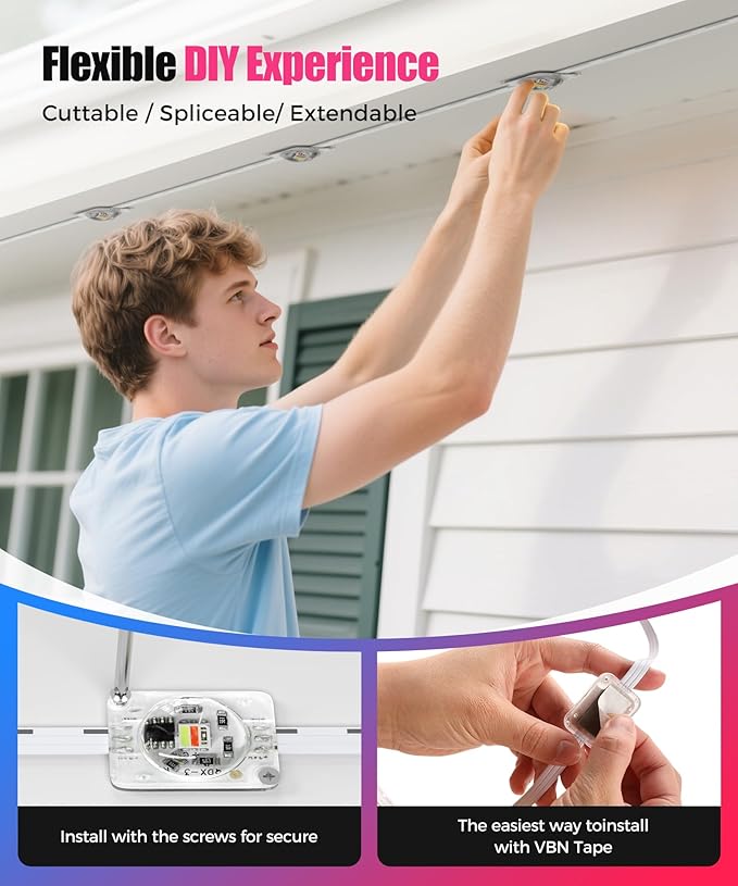 - ๐๐ฆ๐๐ซ๐ญ ๐๐จ๐ง๐ & ๐๐จ๐ข๐๐ ๐๐จ๐ง๐ญ๐ซ๐จ๐ฅ๏ผControl every outdoor light for house via app or Alexa/Google voice! Customize brightness, colors, timers, and security modes. Sync lights to music or create dazzling shows with a tap!