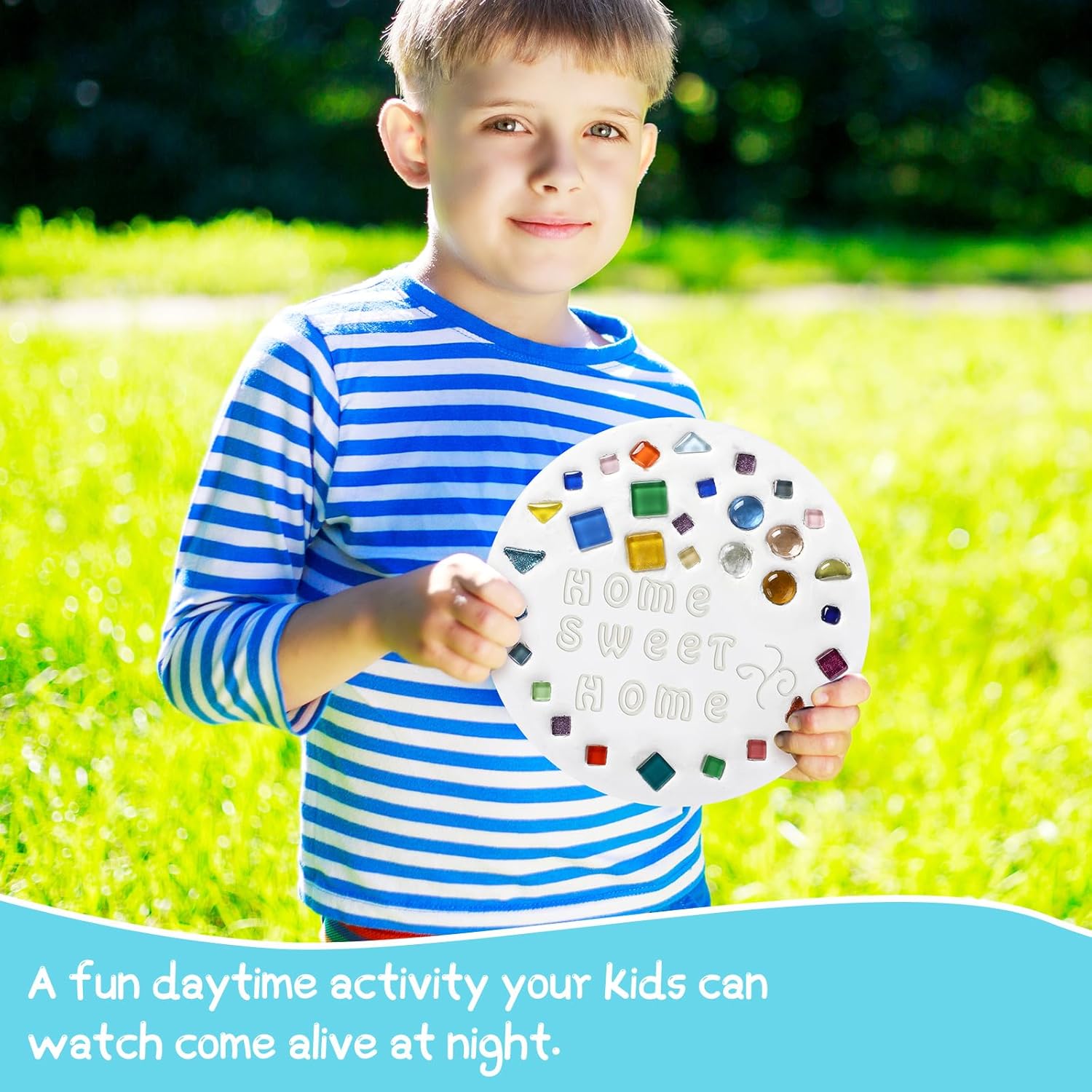 - Creative Customization: express yourself with the included 250g mixed color mosaic tiles and full alphabet/number stamps; This DIY stepping stone kit encourages artistic designs, from simple stamped messages to elaborate tile patterns for unique garden decor