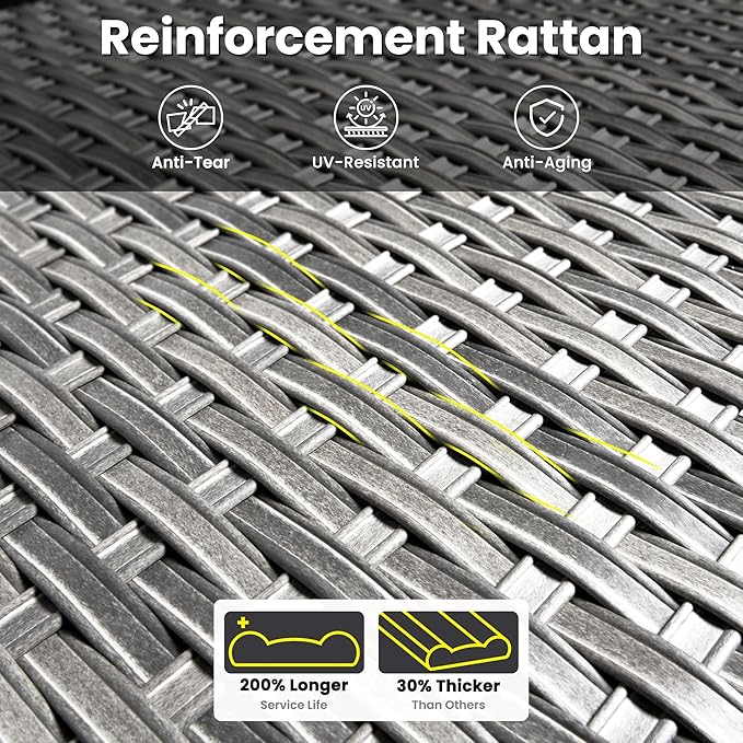 - All-Weather Rattan: Crafted from handwoven premium PE wicker with intricate handwoven detailing, this set is UV-resistant, waterproof, and built to withstand sun, rain, and wind. Its durable construction ensures long-lasting beauty without fading or cracking