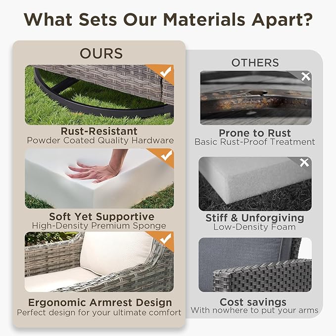 10 Piece Patio Furniture Set-High Back Outdoor Furniture Set Sectional Sofa with Wicker Swivel Patio Chairs,Comfy Cushions Ottomans for Porch Balcony Patio Deck Grey/Beige