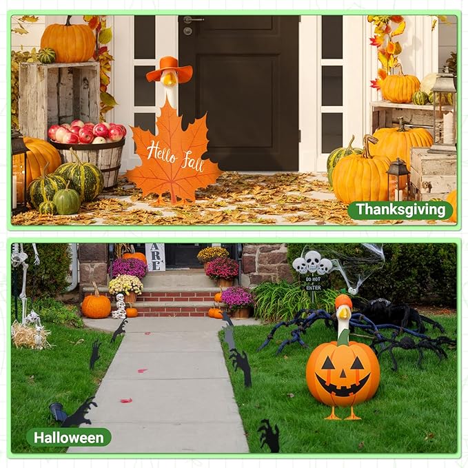 - Whimsical and Classic Designs: each goose costume features iconic holiday symbols like autumn leaves, pumpkins, Christmas trees, hearts, shamrocks, eggs, and stars; These cute and creative styles instantly bring a cheerful and eye-catching touch to your porch, lawn, or patio decor