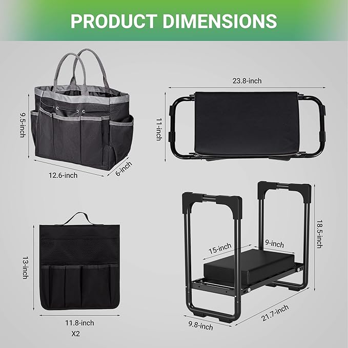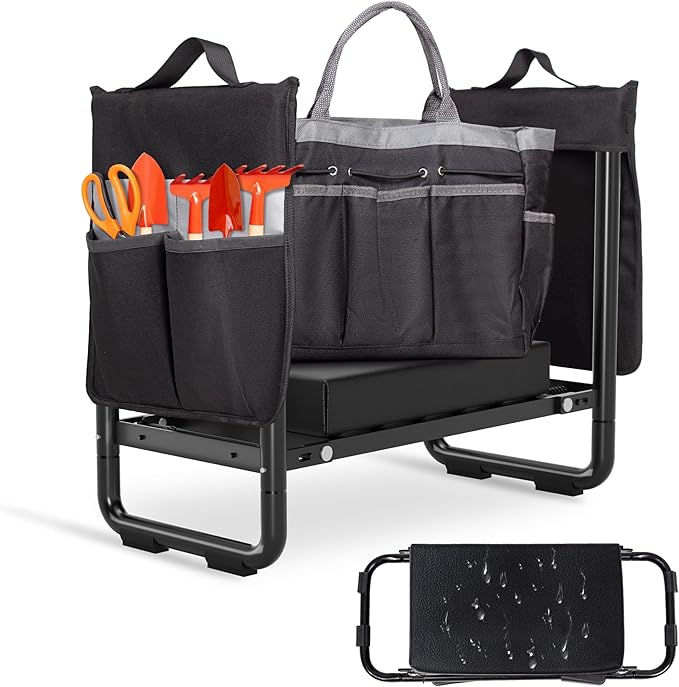 - No Assembly, Foldable Design for Easy Storage: Unlike garden kneeler, our garden kneeler and seat requires no tools to set up. Simply unfold it in seconds. When not in use, hang your kneeling device for gardening in the garage or shed. Compact and lightweight, it’s ideal for gardening seats for seniors and anyone looking to simplify their yard work.