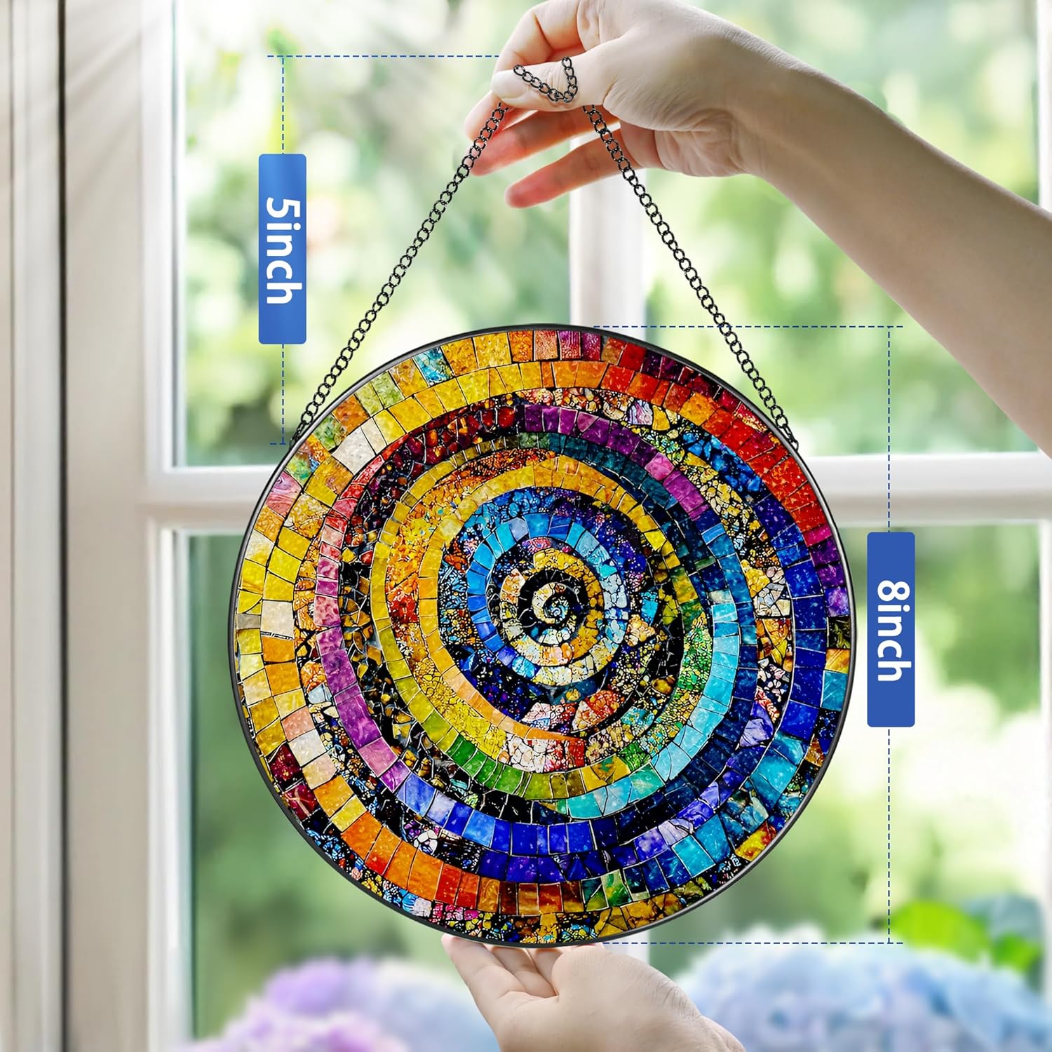 - ☀CRAFTSMANSHIP DETAILS: Captivating with vivid, rich tones, this suncatchers for windows hanging is designed to impress. The 8-inch size is thoughtfully engineered to showcase intricate pattern details while letting colors shine vibrantly, adding a burst of color to any space.