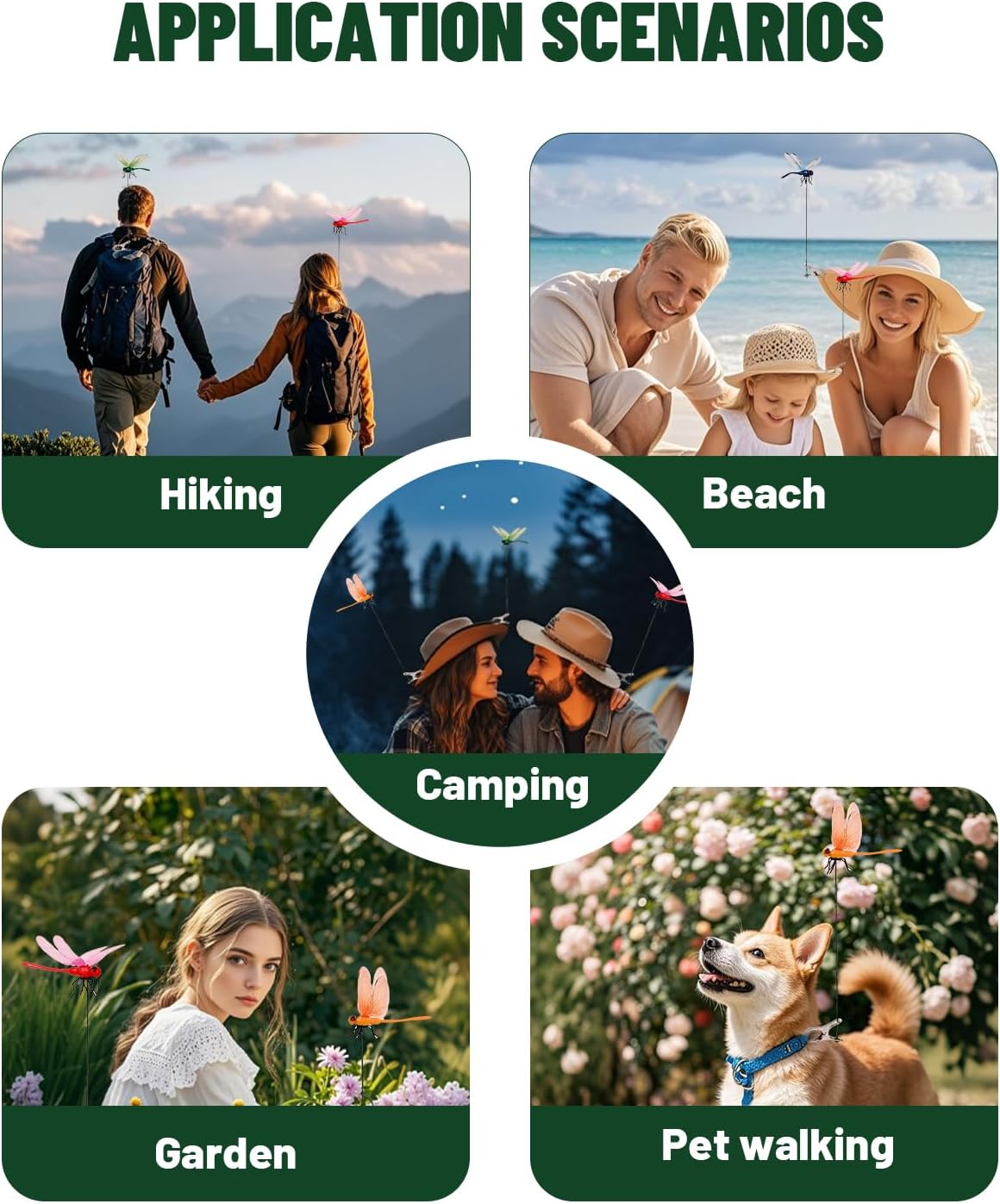 - Effective Pest Control: The 3D dragonfly clip is designed to repel deer flies and horseflies. Its lifelike flying motion and flexible structure naturally confuse pests, providing an effective deterrent. Clip it to your hat, collar, stroller, or backpack to keep biting insects away.