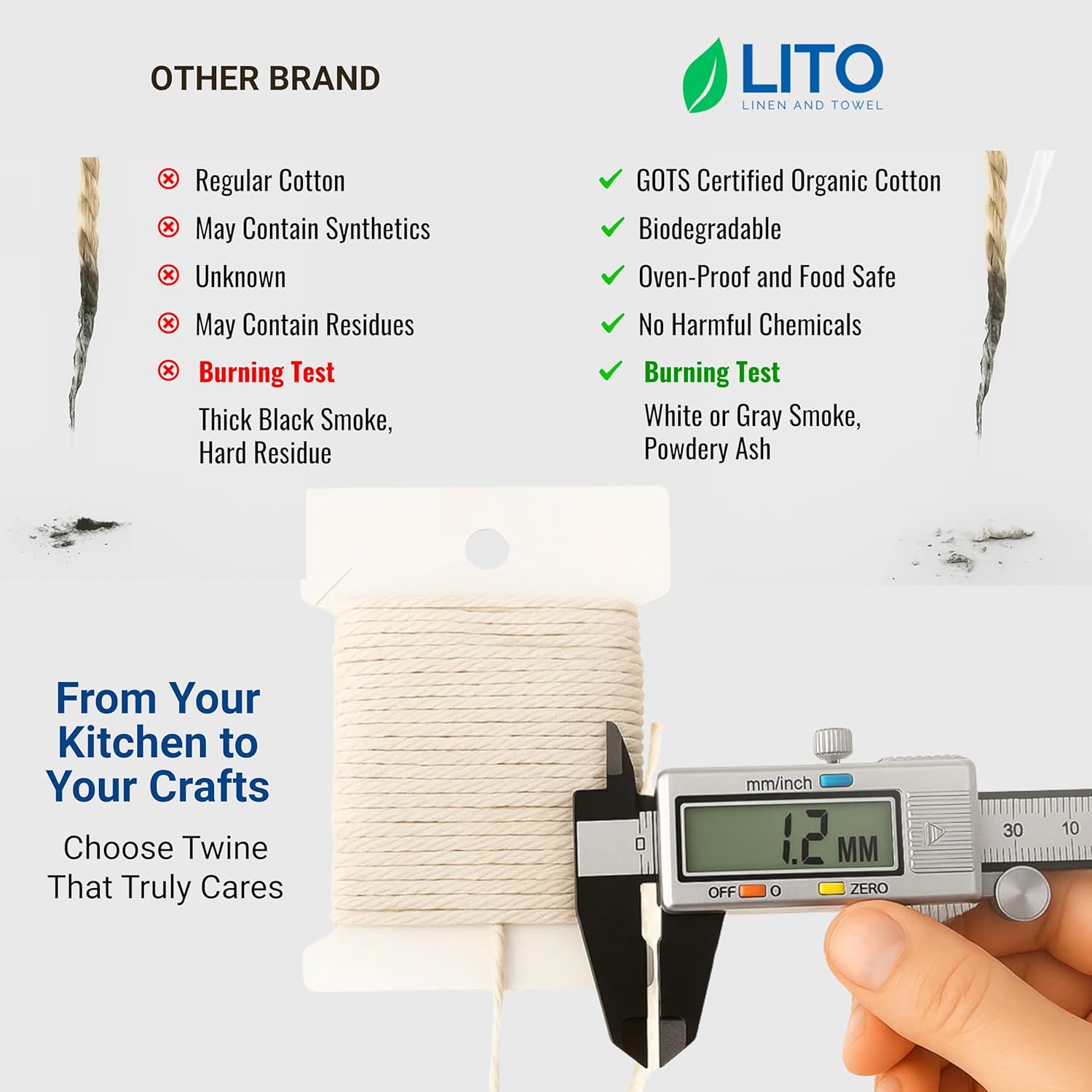 Organic Butcher’s Twine 100 Feet for Cooking & Trussing Meat– 1.2mm Heavy Duty Natural Cotton Kitchen String, Food-Safe & Oven-Safe for Turkey, Baking, BBQ & Crafts